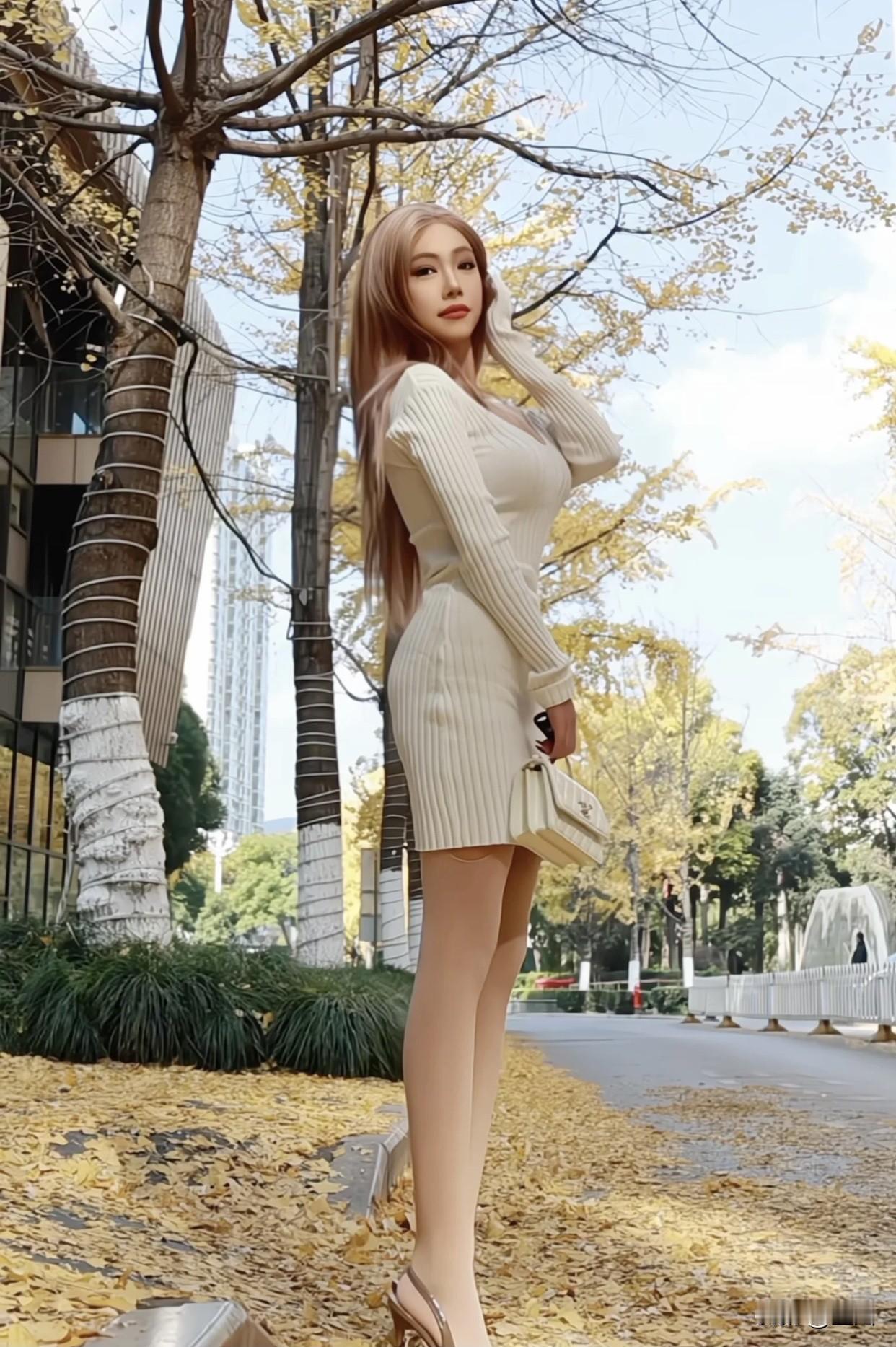 个人写真怎么拍才好看秋日暖阳下,优雅的都市女性在落叶中静坐,尽显时尚与魅力。