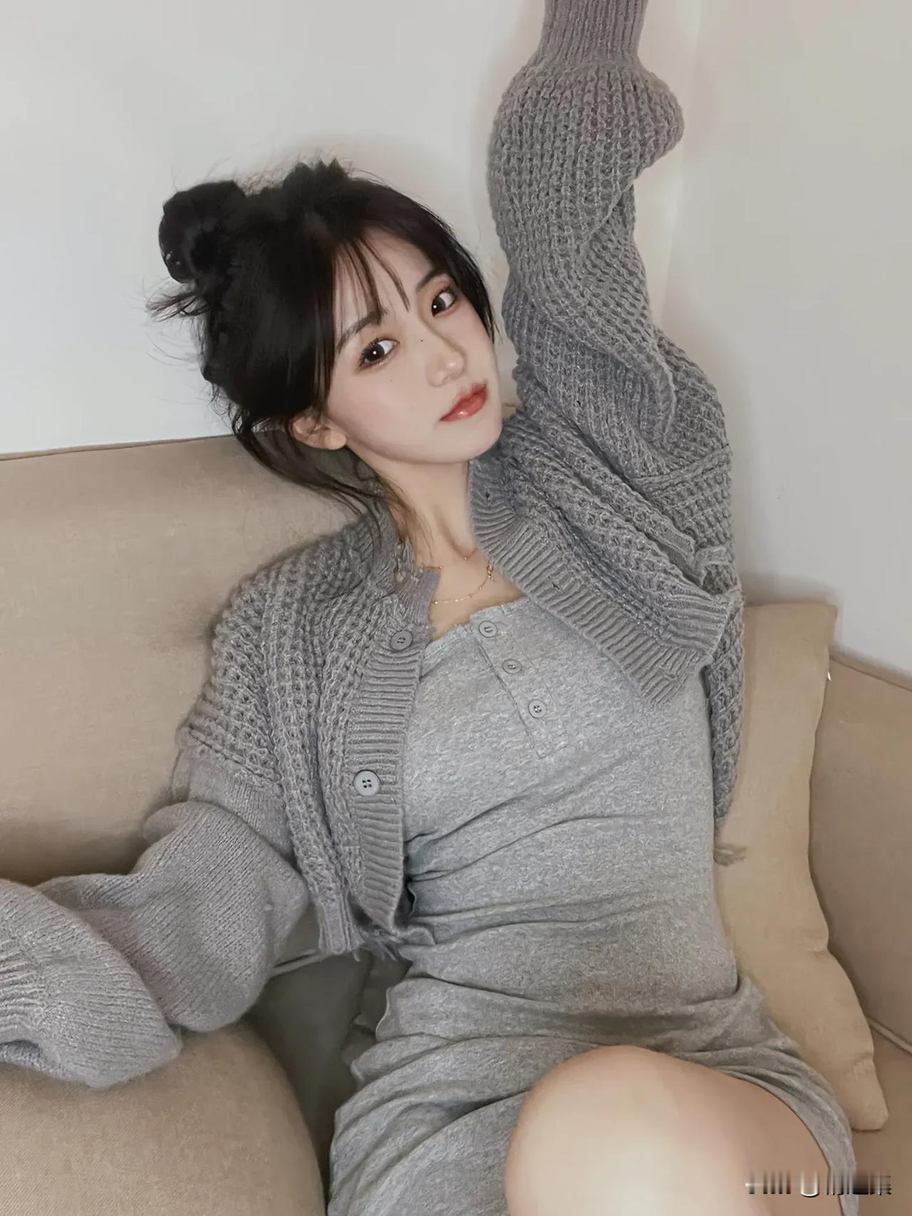 温柔甜美的居家穿搭,灰色调轻松舒适,少女心满满!💕