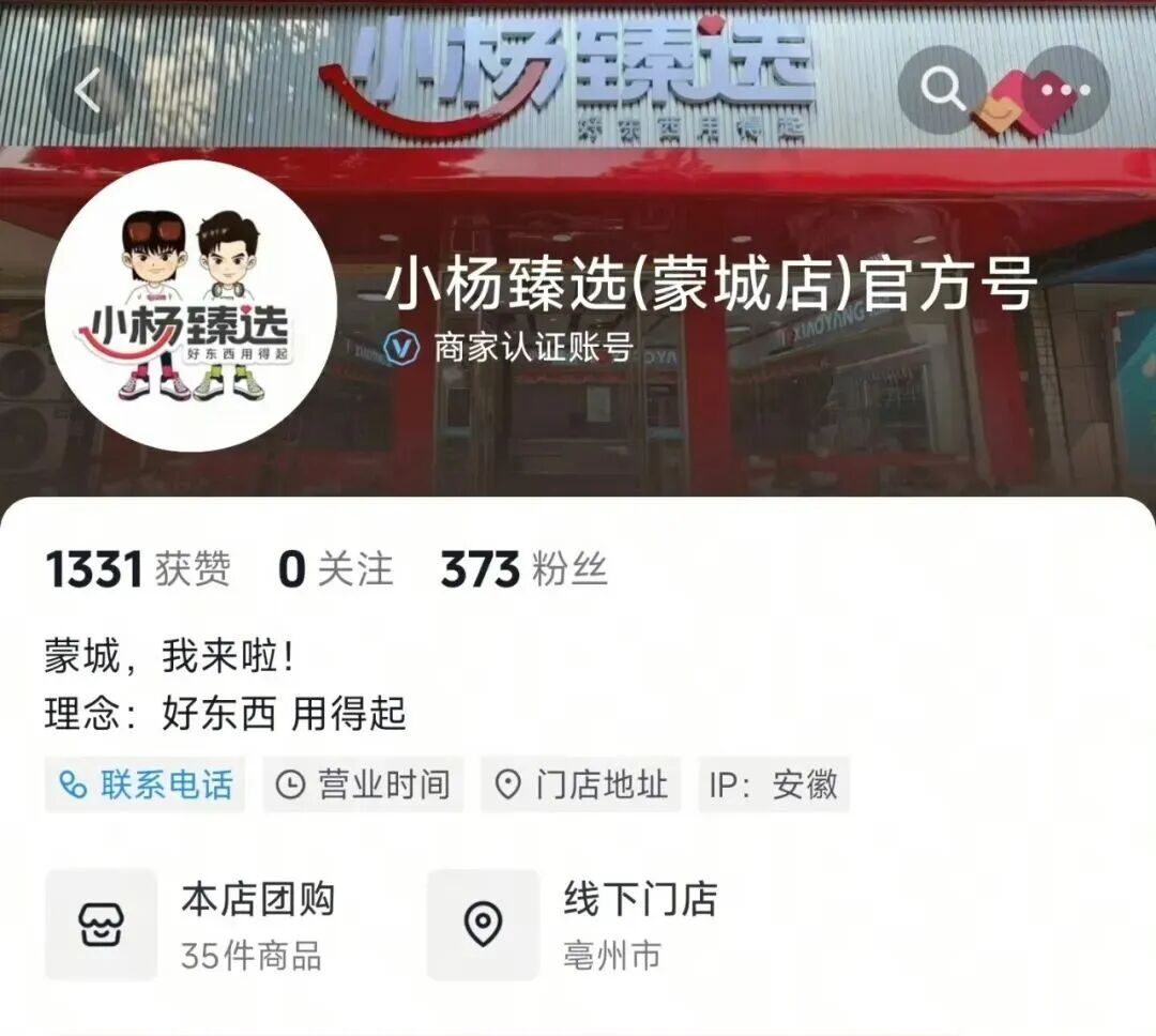 10月,还一度传出小杨臻选线下加盟门店开业的消息。目前,抖音账号小杨臻选(蒙城店)显示该店营业时间为9:00-21:00,应该已经正常营业。