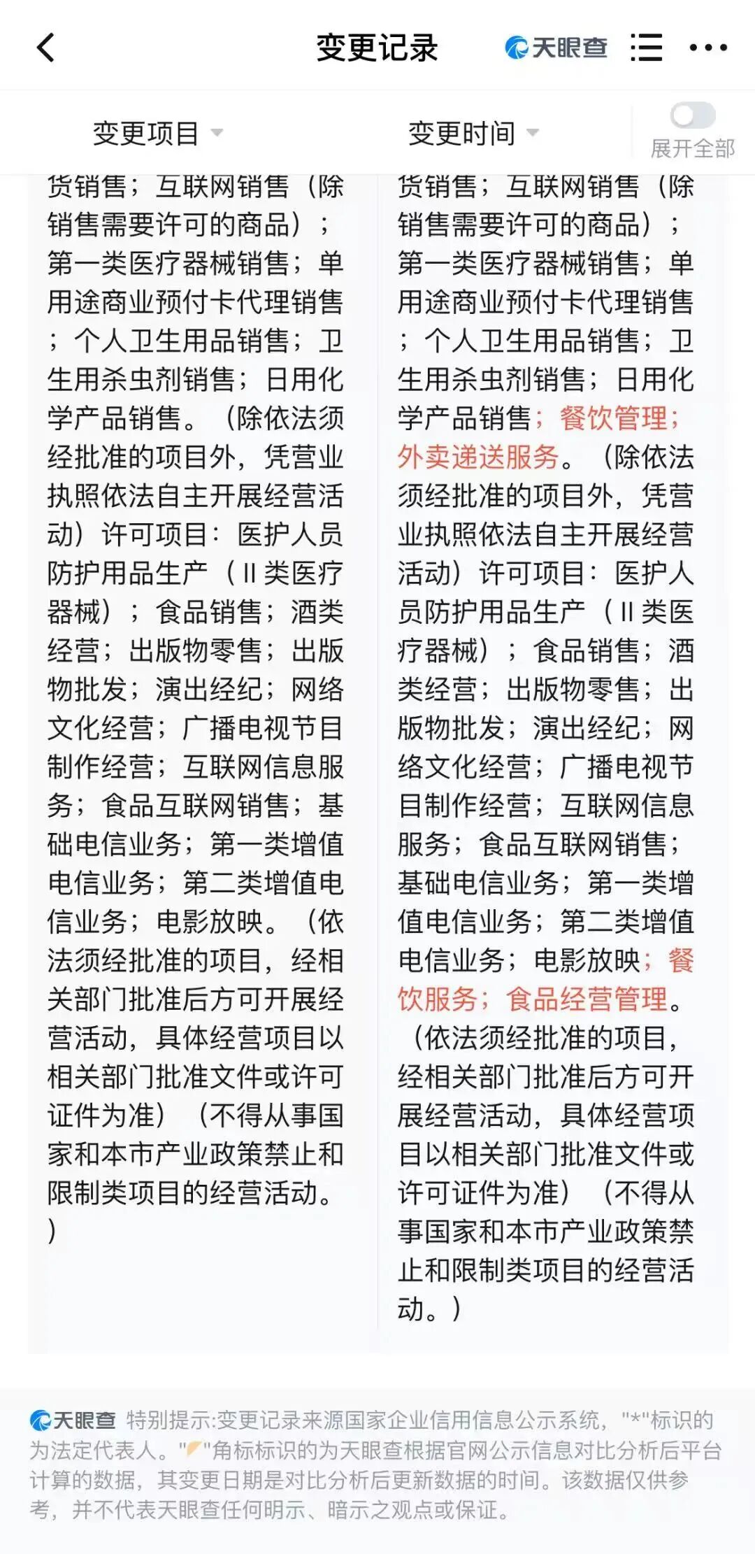 近日,随着前CEO孙东旭的离职,东方甄选工商变更,俞敏洪正式接替孙东旭担任法定代表人。同时,其公司经营范围新增餐饮管理、外卖递送服务及餐饮服务等业务。