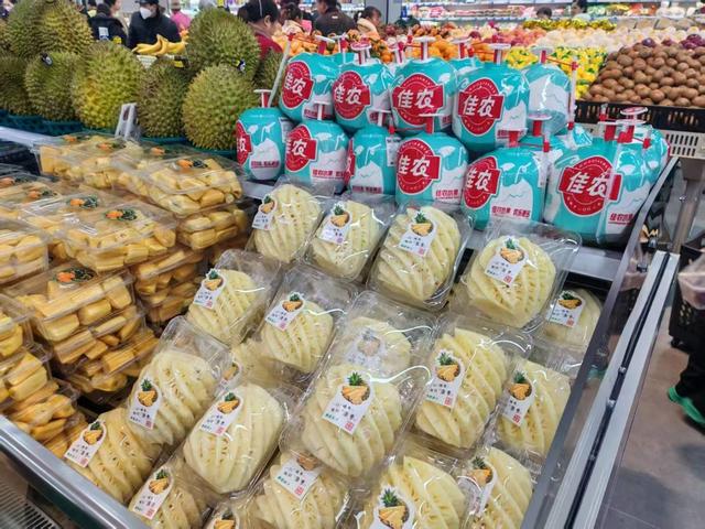 改造后的星港集贸市场,以现代化生鲜超市的模式运作,不仅内部环境明亮整洁、过道宽敞通透,而且分区清晰合理,包括休闲食品区、日配冷藏区、酒水饮料区、米粮油面区等,整合了蔬菜、肉类、水产、粮油、日常生活用品等各类商品,足以满足周边村民的日常生活需求。