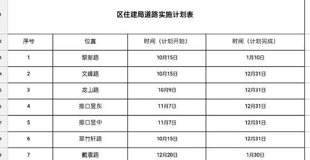 此外,中心城区屯溪还有一些道路及人行道施工项目为屯溪区政府负责,屯溪区住建部门也提供了屯溪区级负责的道路施工项目及计划施工时间。其中,有些已经在施工或完工。