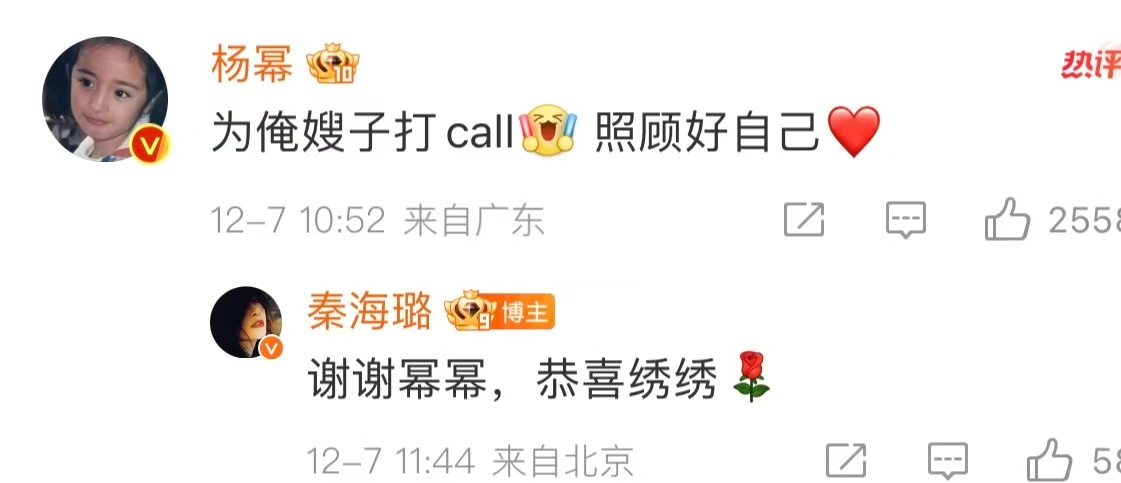 杨幂回复秦海璐 6日,杨幂在尖叫之夜替秦海璐领奖。晚间,发文:“感谢爱奇艺给我的这份荣誉。默默耕耘,播种希望,厚土养穗,抬眼是丰年。恭喜俺们《生万物》!谢谢绣绣帮我领奖。冬季寒冷,大家多多注意保暖、保重身体呀~”杨幂回复秦海璐:“为俺嫂子打call,照顾好自己。”秦海璐还回复说:“恭喜绣绣”。