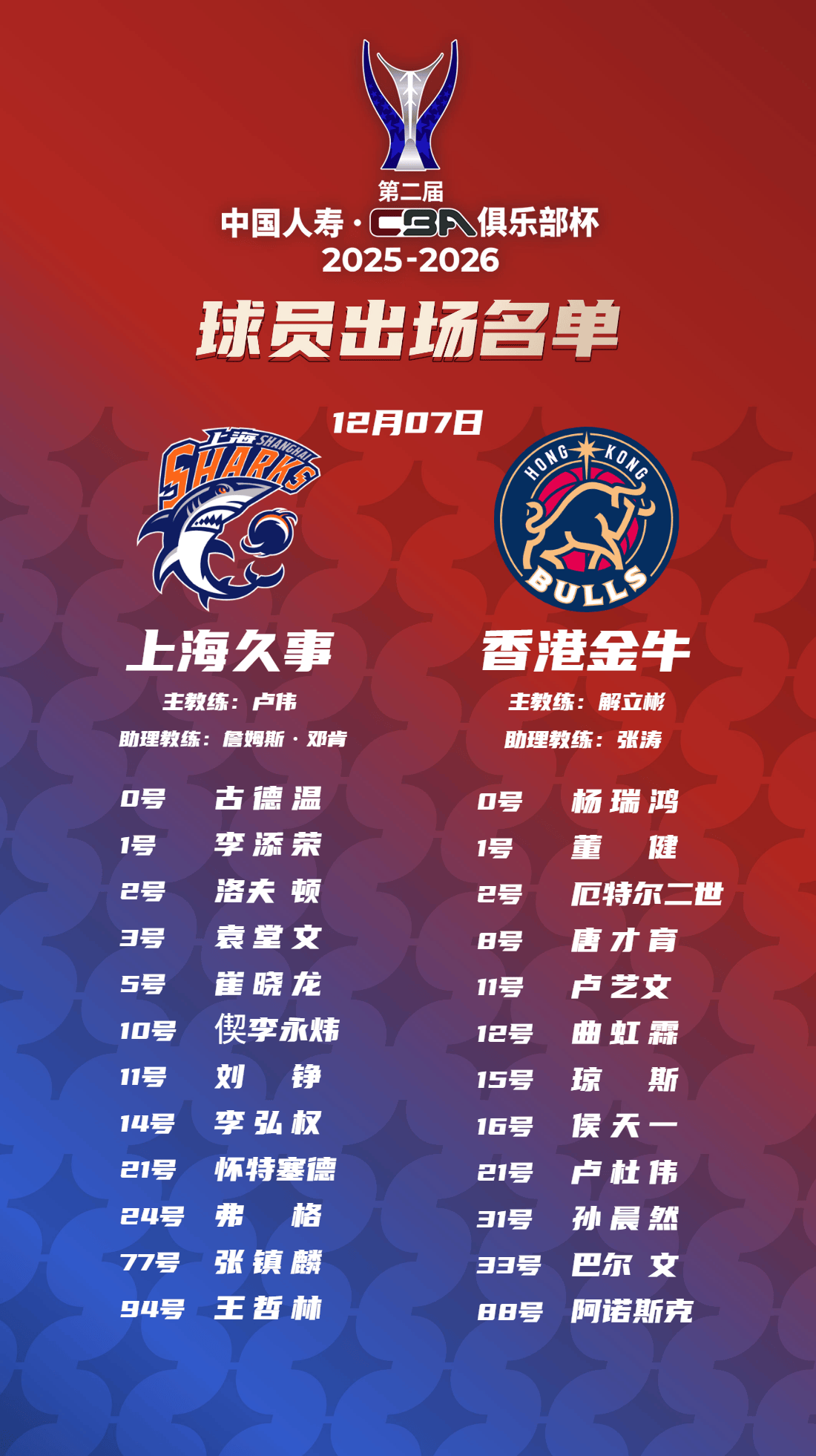 虎扑12月07日讯今日CBA杯,上海男篮将对阵香港金牛。