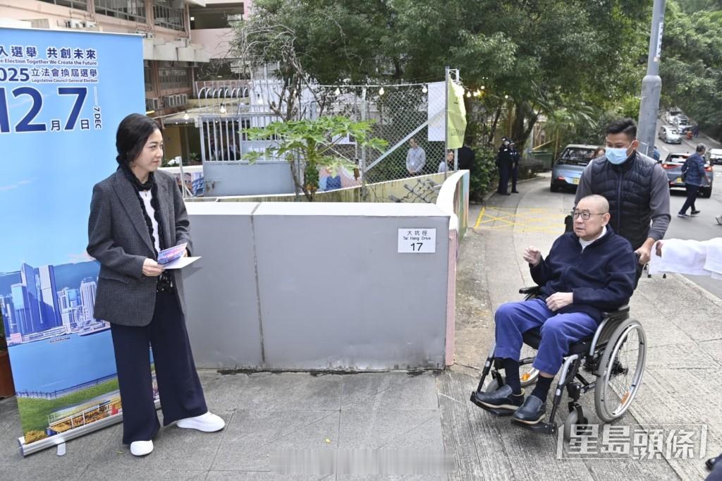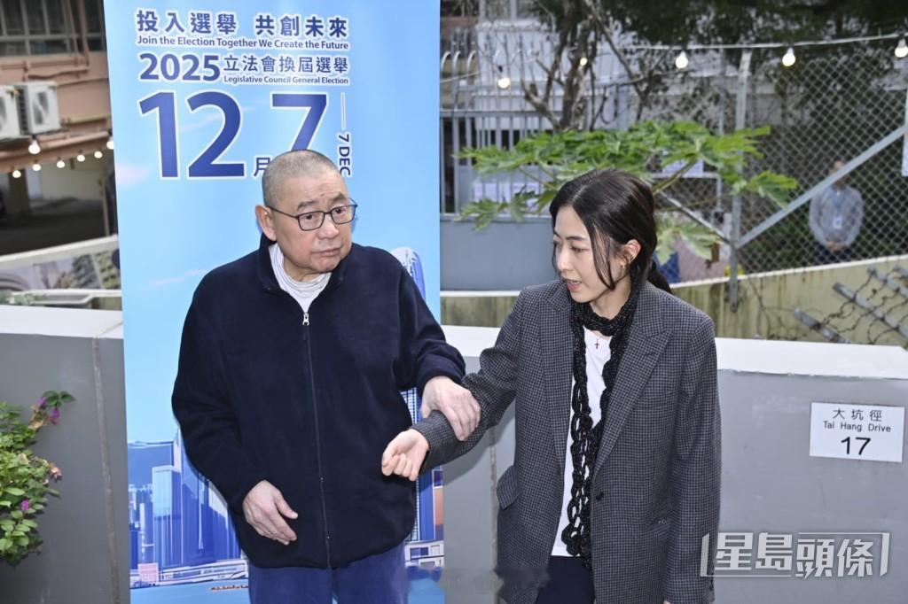 星岛:立法会选举2025|刘銮雄夫妇恩爱投票 甘比挥动心意卡:投了票未? 揭慈善基金将长远助大火灾民立法会换届选举今日(7日)举行,早上10时30分,富商刘銮雄与太太刘陈凯韵(甘比)乘坐7人车到达位于大坑径的投票站,两人下车时精神奕奕地跟记者打招呼讲早晨,之后他们拖着手站在票站外拍照,然后在保镖陪同下进入投票站。大刘轻拥甘比逗留约7分钟后,已完成投票的刘銮雄与甘比离开票站,当中自行步入票站的刘銮雄改成坐着轮椅出来,期间甘比亦挥动手上的心意卡,问在场记者:“你们投了票未?”而刘銮雄其后就示意可站起来跟太太合照,之后他便轻拥太太,甘比则竖起拇指。甘比表示:“虽然我们心情仍然很沉重,但今天需要尽公民责任来投票,希望大家都出来,投自己心仪的人选!”甘比透露慈善基金助火灾灾民甘比补充:“刘生创办的慈善基金40年来一直致力帮助有需要人士,今次火灾亦不例外,除金钱上的捐助,我们亦派出义工协助灾民。同时,刘銮雄与陈凯韵慈善基金更加关注灾民日后的生活和精神健康,希望为他们提供更长远的服务和协助。”