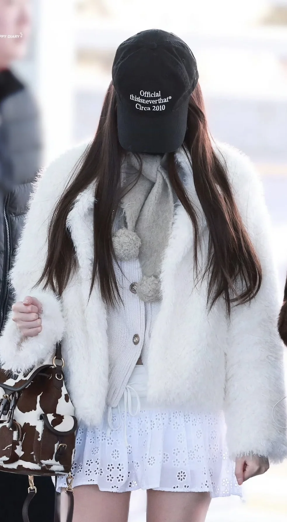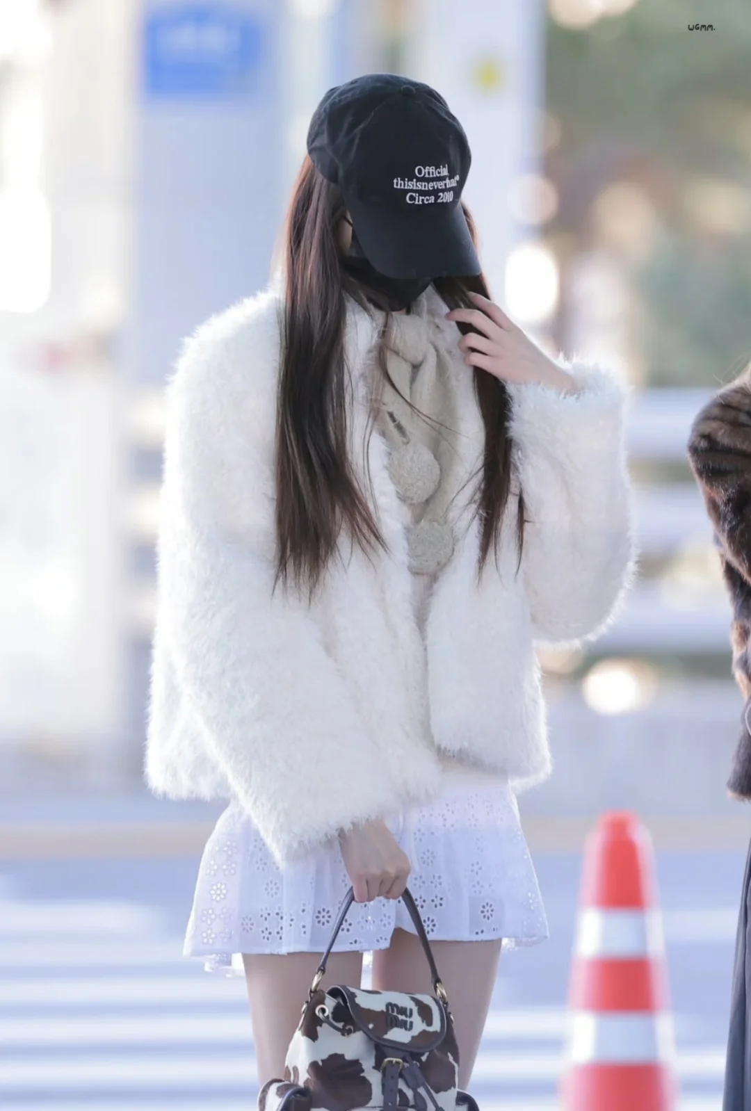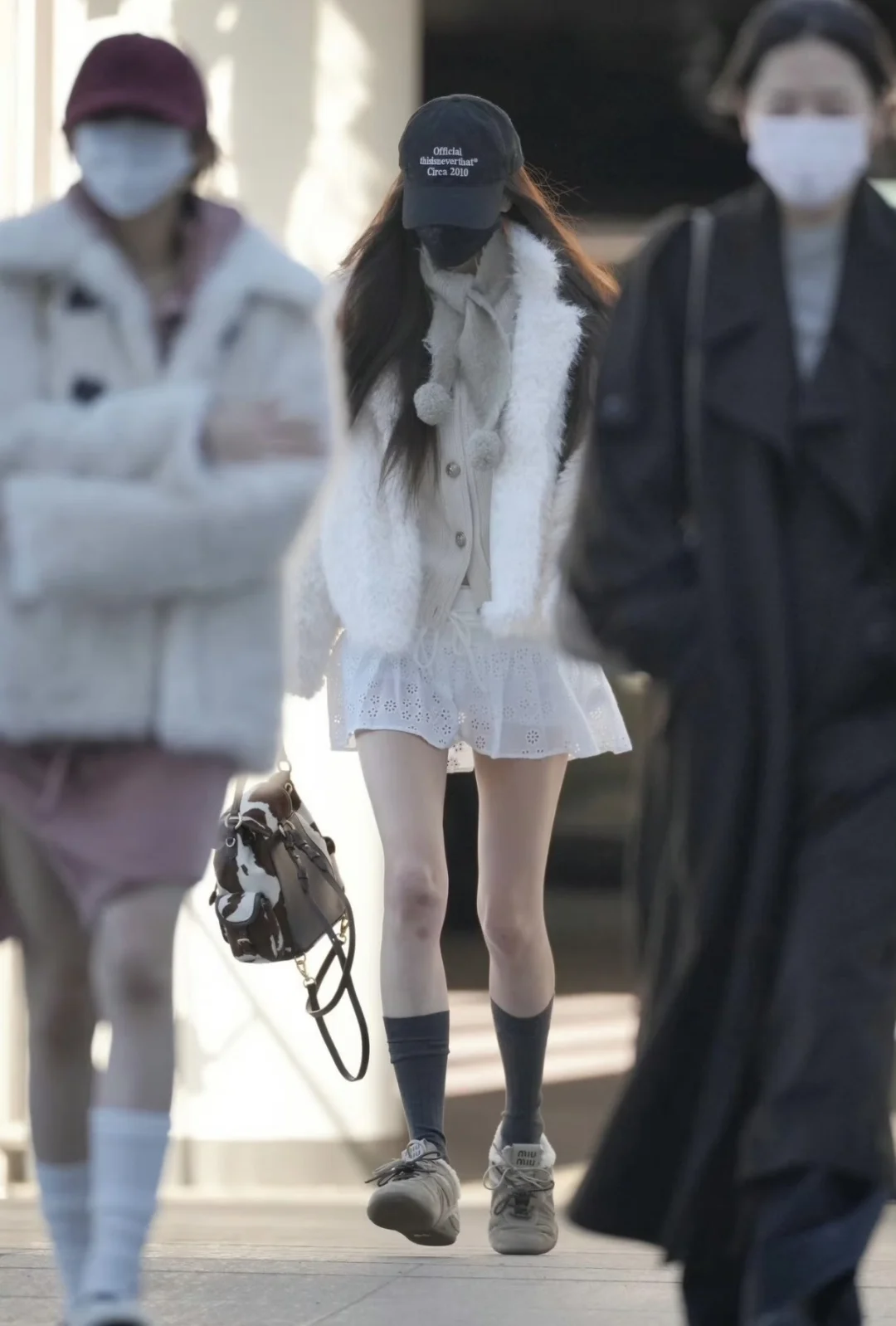 零下温度光腿穿短裙,毛绒外套裹得暖乎乎,下装却清爽到犯规 白色系叠穿温柔又干净,灰色长袜+运动鞋平衡了露腿的单薄感,奶牛纹包一背,甜妹气场直接拉满! 果然美女的冬天只有“好看”没有“寒冷”