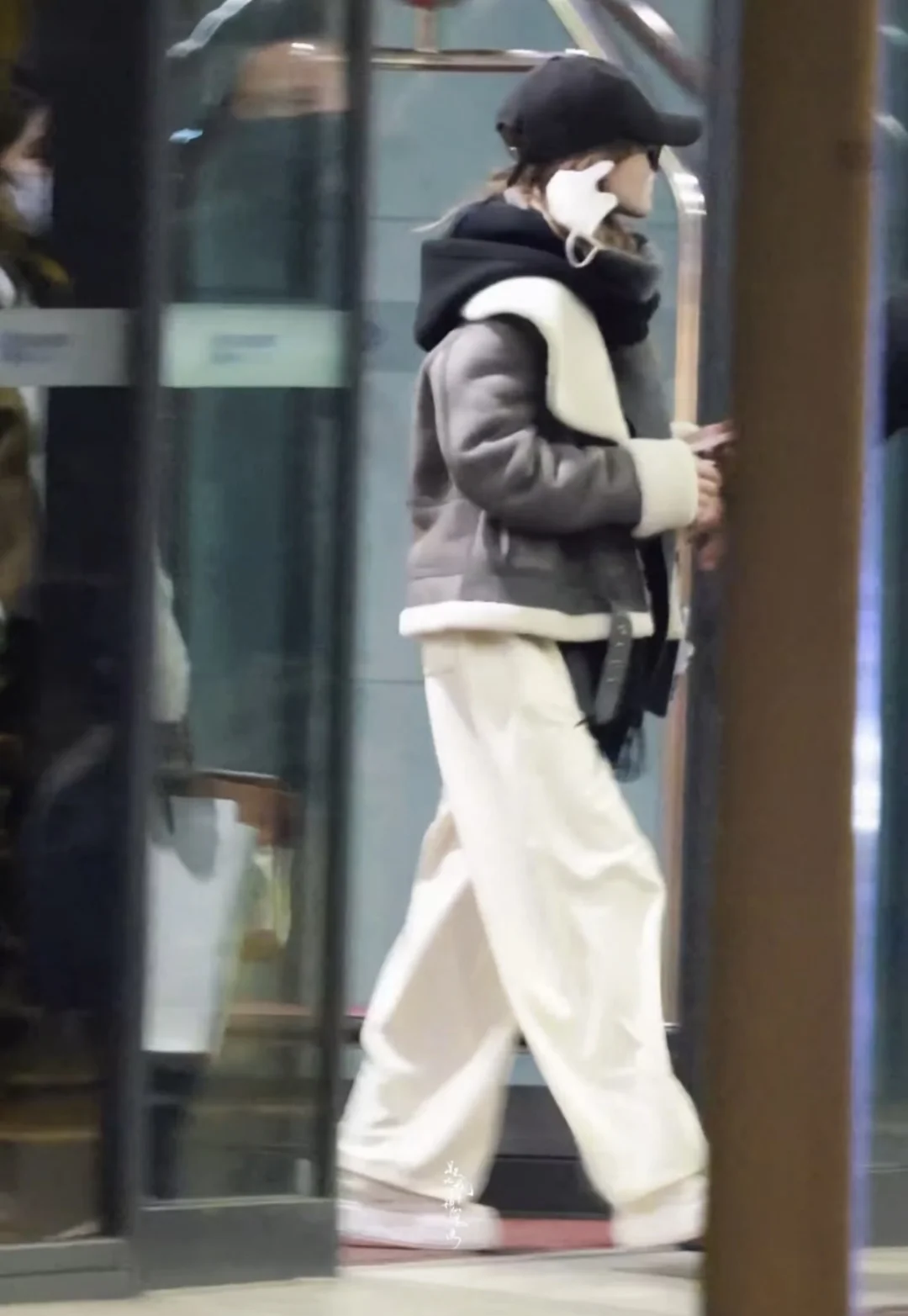 赵露思被偶遇,软fufu的好可爱~露思这套冬日look好会穿!深蓝派克羽绒服叠针
