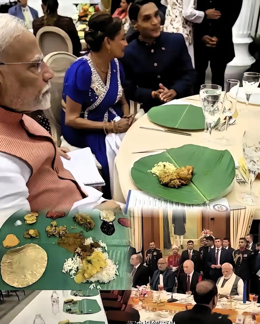 莫迪给普京整了顿"国宴",结果把网友乐坏了。 最新照片显示,克里姆林宫餐桌上摆着黄澄澄的土豆泥、绿油油的茄子糊,甜点盘里化了一半的冰淇淋像融化的雪糕。俄方随行人员透露,普京只尝了口胡萝卜姜汁,全程没动主菜。 这事儿在印度国内炸锅了,反对党嘲讽莫迪"用食堂菜招待贵宾"。专家分析,印度这波操作像极了相亲时炫富——本想展示"香料王国"底蕴,结果整成了黑暗料理博览会。其实菜单藏着小心思:罗望子汤开胃促消化,明显是为七旬客人量身定制。 要说外交饭局的门道,中餐佛跳墙、法餐鹅肝酱那是基本操作。印度这桌"糊糊宴"倒像打明牌——咱就这饮食习惯,爱咋咋地。 您见过最离谱的国宴菜是啥?