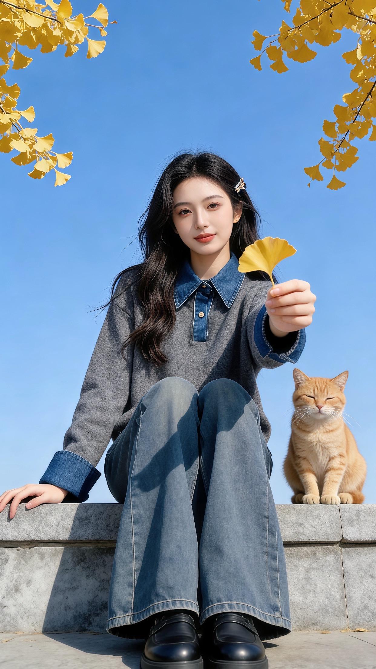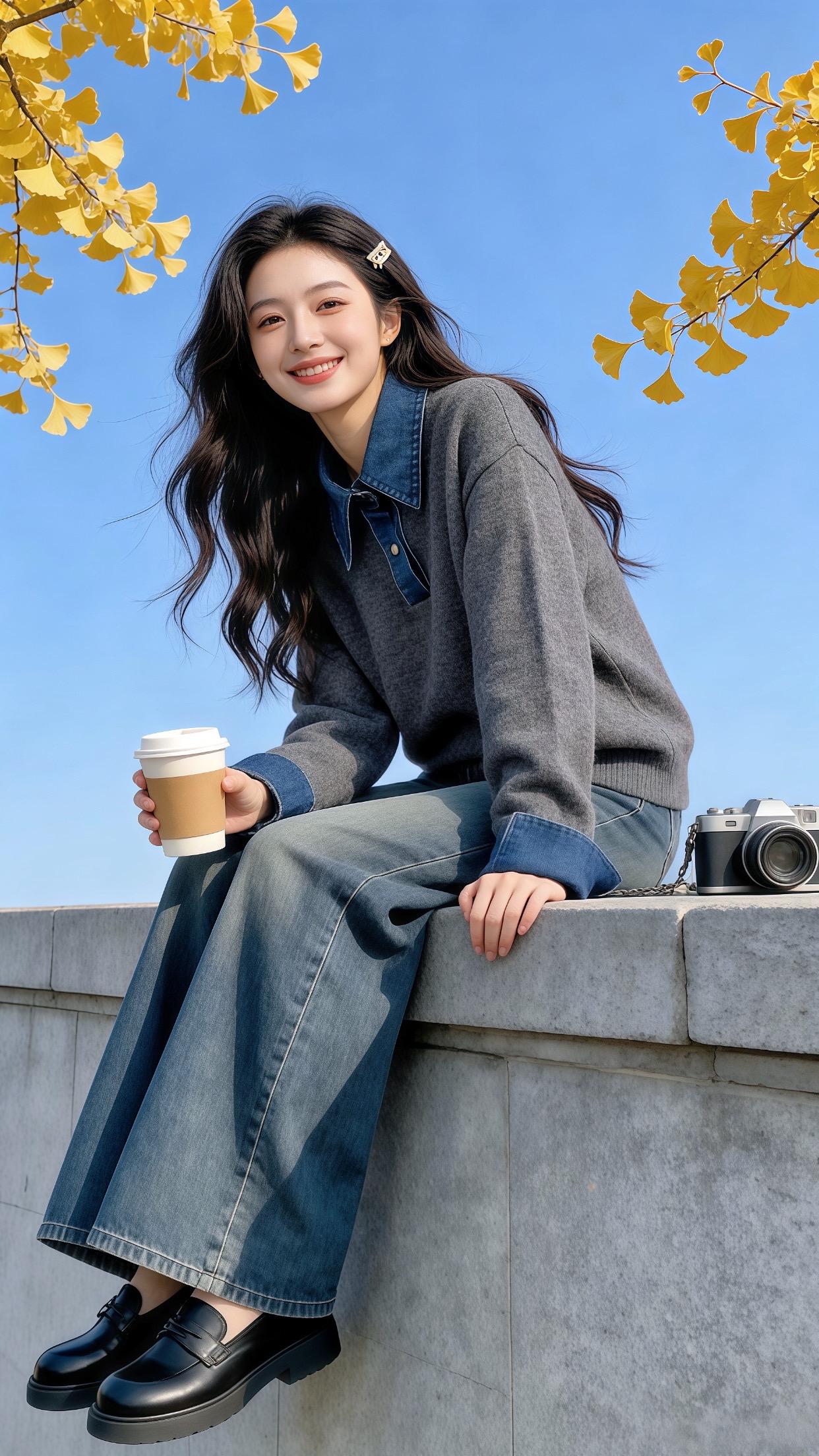 清新夏日穿搭,白色露肩上衣搭配牛仔短裙,坐在柔软的地毯上,享受悠闲时光。