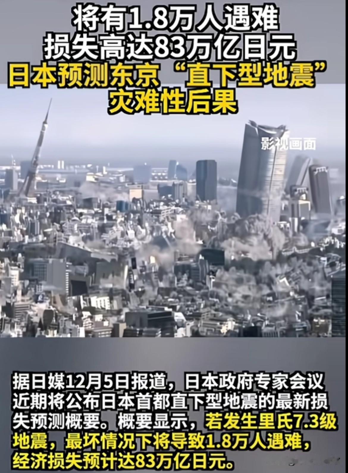 日本对东京直下型地震的最坏预估,后果堪称毁灭性。一旦爆发,预计将有1.8万人不幸遇难,经济损失更是高达83万亿日元,无数建筑会坍塌损毁,城市运转瞬间瘫痪,民生秩序彻底打乱。 东京地处地震活跃区域,直下型地震破坏力极强,震感剧烈且影响范围集中,对人口密集、建筑密集的都市来说,冲击难以估量。如今这份预警也给当地敲响警钟,后续的防护加固、应急筹备刻不容缓,唯有做好充足准备,才能尽量降低灾难带来的惨重伤害。日本海地震风险 日本大地震