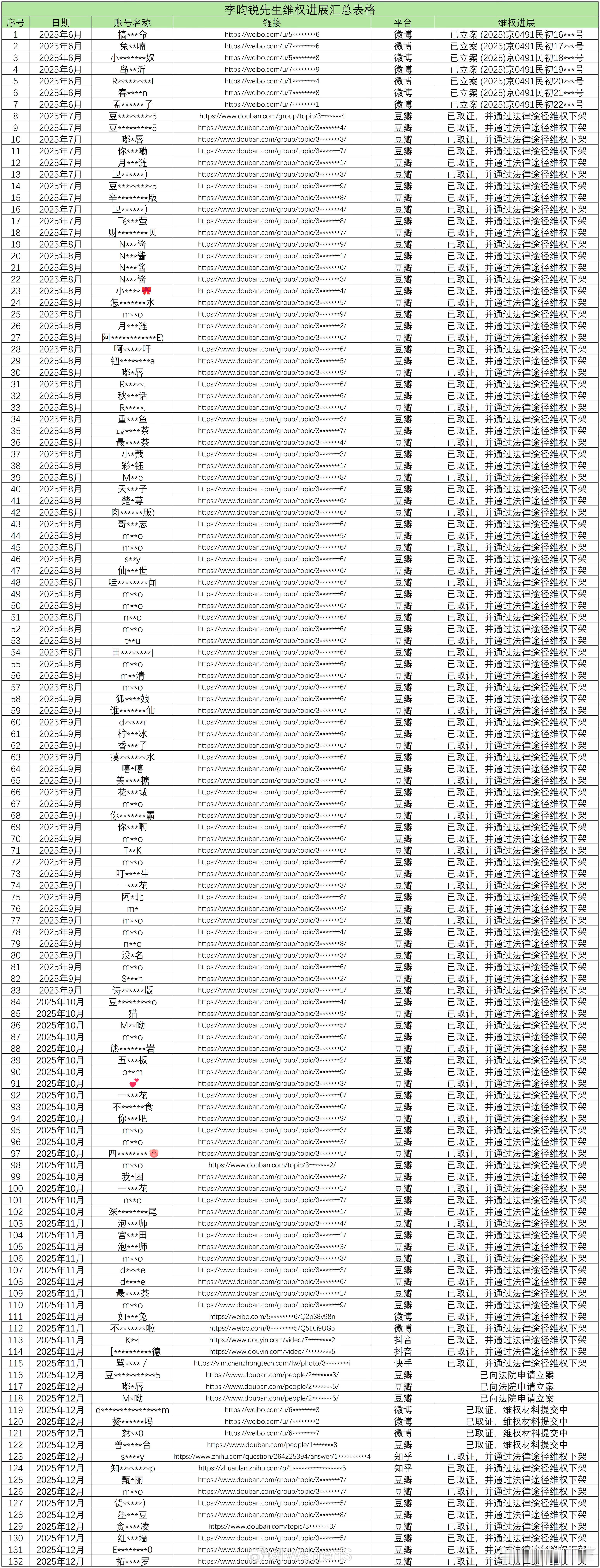 李昀锐方告黑维权进展公布了呀!李昀锐告了132人…… 李昀锐告了132人
