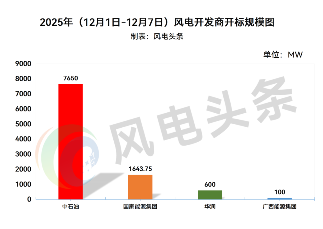 国家能源集团开标1643.75MW,金风科技中标1153.75MW,三一重能中标450MW,东方风电中标40MW。
