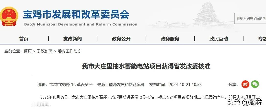 陕西最大水电项目落子宝鸡 最近,在宝鸡的山水之间,一项备受瞩目的超级工程即将从蓝图走向现实,它就是大庄里抽水蓄能电站。2024年10月18日,该项目正式获得省发改委核准。 这个项目意义非凡。它不仅是陕西省“十四五”规划的重点实施项目,更是省内规划中装机规模最大的抽水蓄能电站,总投资高达147.8亿元。早在2021年,它就被列入了国家《抽水蓄能中长期发展规划(2021-2035)》。 项目选址在宝鸡市陈仓区香泉镇和拓石镇,距宝鸡市区约85公里。其枢纽工程主要包括上水库、下水库、输水系统、地下厂房等,为一等大(Ⅰ)型工程。电站装机容量为210万千瓦,设计年平均发电量约42亿千瓦时。 根据规划,项目计划于2026年1月1日正式开工,预计在2033年8月全面竣工。 建成后,大庄里抽水蓄能电站将主要承担陕西电网的调峰、填谷、储能、调频等重要任务,可显著提升关中地区的电网调节能力。 据估算,项目建设高峰期可提供超过4000个就业岗位,其带动力和长远经济效益都十分显著。