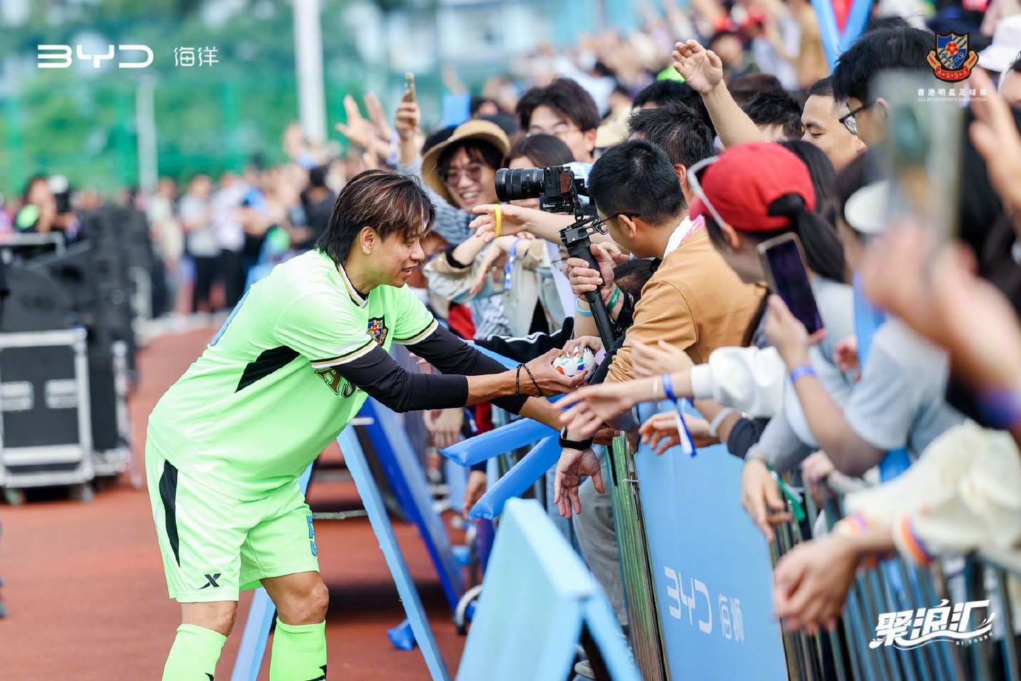 当比亚迪海洋车主踢馆香港明星足球队今天的海洋足球超级联赛总决赛,比亚迪再次把车主
