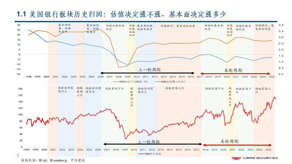 中信建投 | 美国银行板块历史归因:估值驱动还是基本面驱动?