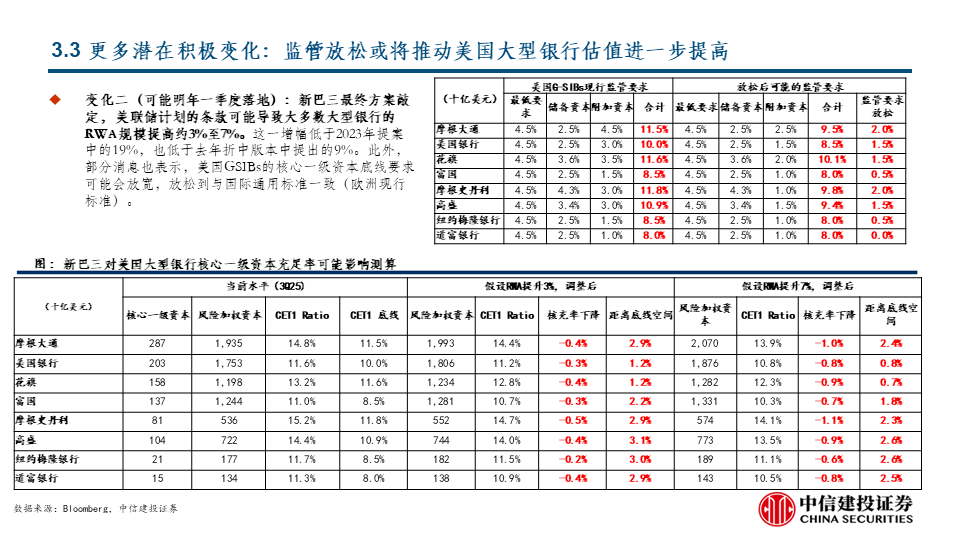 银行业监管对银行核心一级资产充足率的要求或将更加严格,影响银行的基本经营情况。