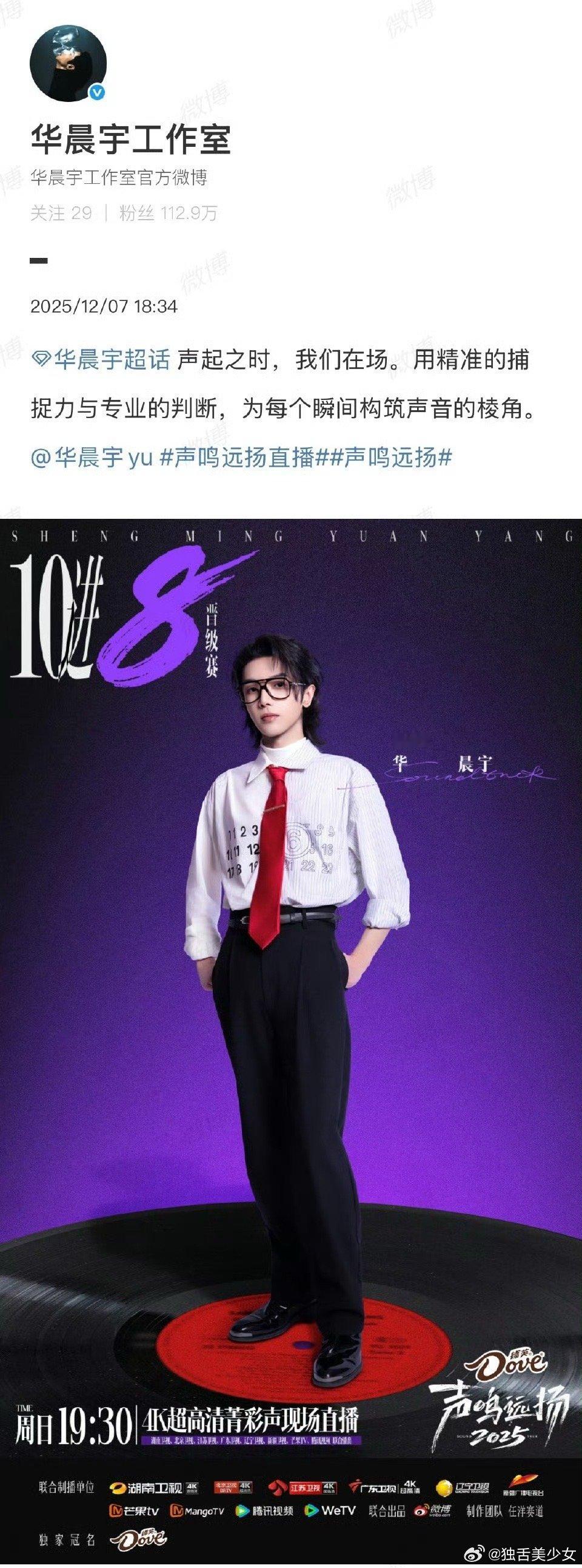 华晨宇回归声鸣远扬 专业锐评直击痛点,暖心捞人超圈粉,魔丸导师归位,舞台质感拉满声鸣远扬 19:30-23:00 直播进行中:声鸣远扬直播 进行中!戳【声鸣远扬直播限时投票】 投票表态,为你喜欢的选手争取节目专属互动环节!声鸣远扬