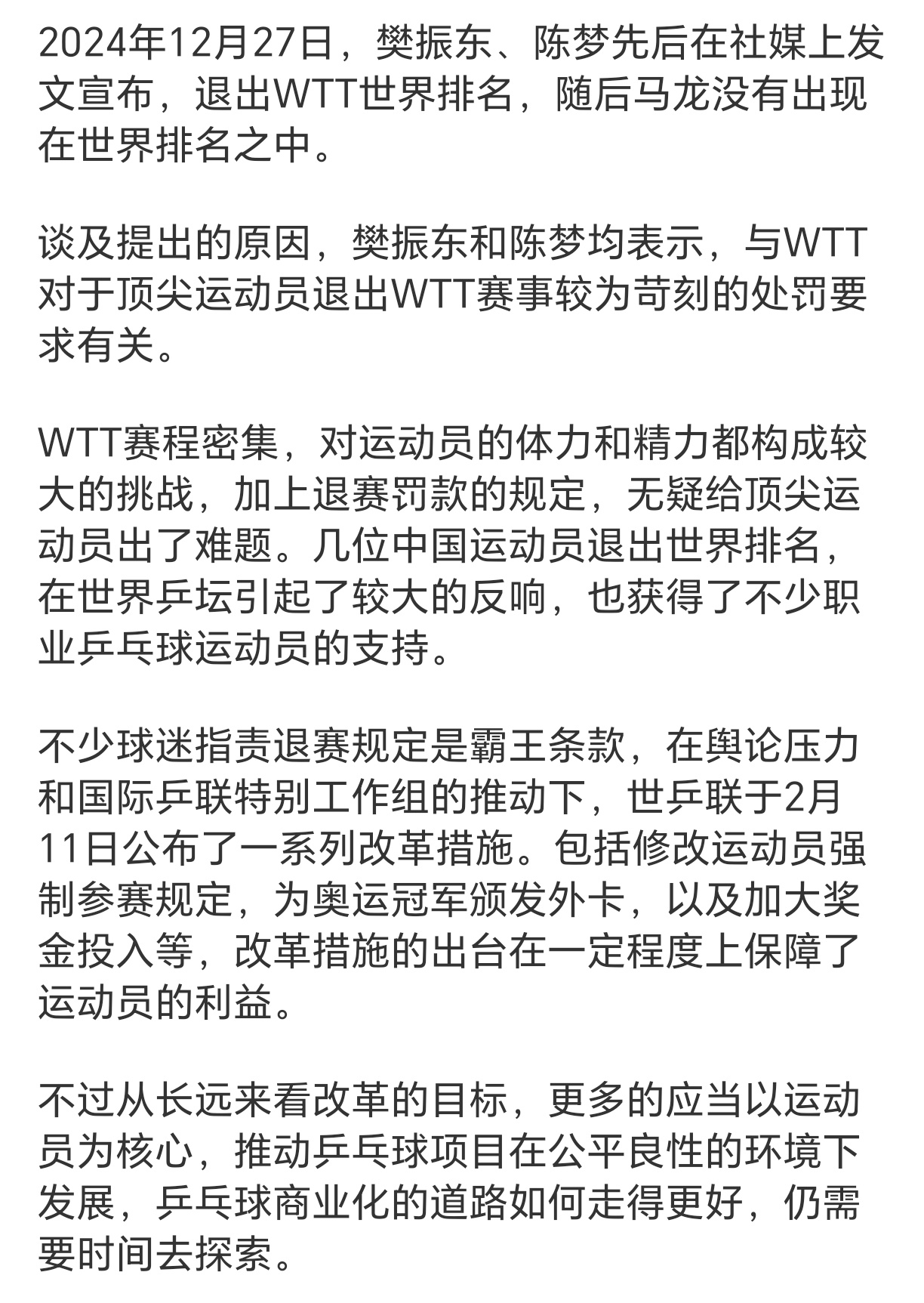 樊振东陈梦发文入选十大体育新闻所有的伟大源于一个开始,而我希望这些改革本人也能用