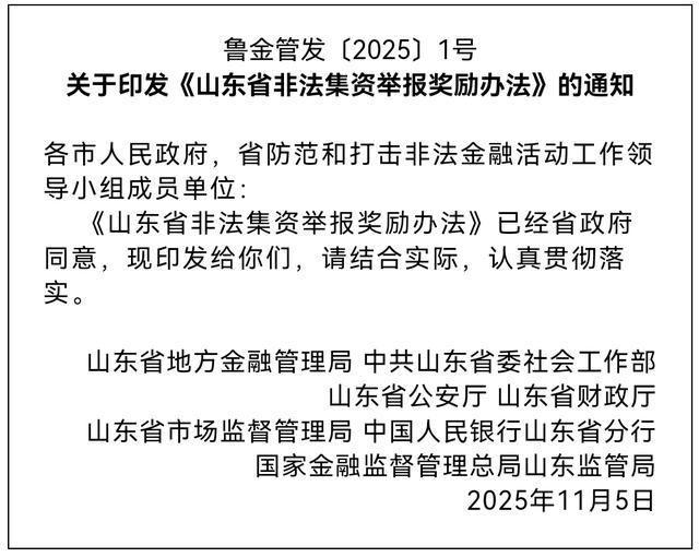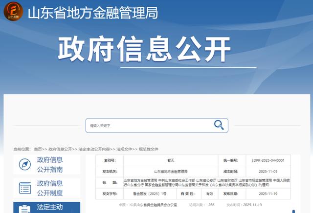 近日,山东省地方金融管理局网站发布《关于印发的通知》。办法自2025年12月8日起施行。