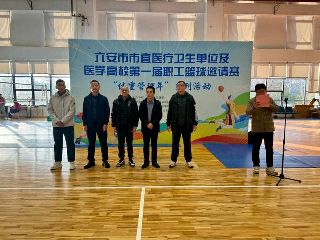 为深入贯彻“体重管理年”三年行动计划及《全民健身计划(2021-2025年)》精神,动员市直医疗卫生单位与医学高校干部职工积极参与全民健身,倡导文明健康生活方式、增强单位凝聚力,12月6日上午,六安市市直医疗卫生单位及医学高校第一届职工篮球赛开幕式在皖西卫生职业学院东区体育馆二楼举行。
