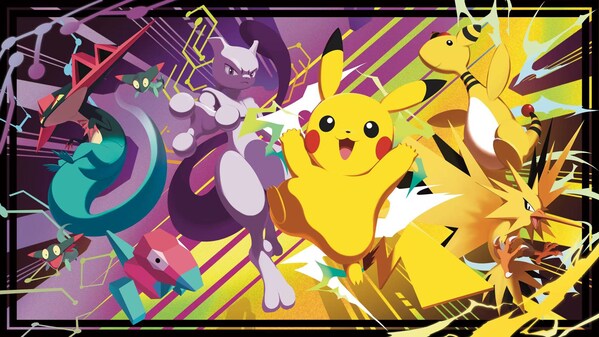 宝可梦卡牌的魅力不仅源自专业严谨的赛事体系,更来自宝可梦所象征的勇气和陪伴的精神与其独特视觉形象。本次深圳大师赛的主题海报以皮卡丘、超梦为核心,结合紫、黄撞色设计,营造出强烈的视觉张力与动感氛围。同时,集结多龙巴鲁托、电龙、闪电鸟、多边兽等宝可梦并肩而立,将"团队赛"的协作精神具象化,传递出训练家们齐聚深圳、共逐卡牌巅峰的热血信念。