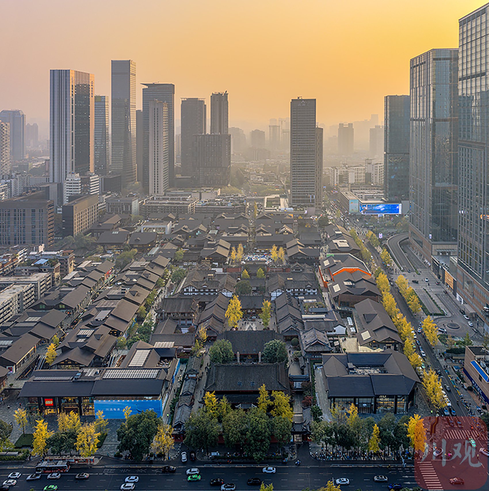11月30日,夕阳下的大慈寺与太古里一道,绘就出初冬“成都封面”。C视觉签约摄影师王瑞林