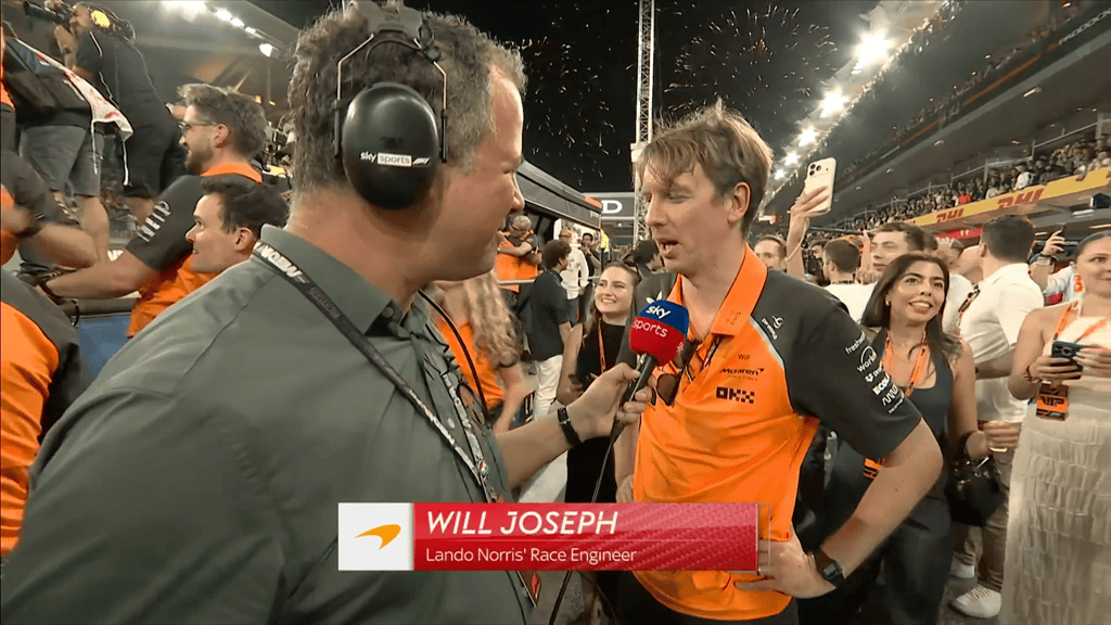 虎扑12月07日讯据天空体育消息,在F1阿布扎比站后,兰多-诺里斯的比赛工程师威尔-约瑟夫称赞了这位合作伙伴的稳定表现,他们联手帮助迈凯伦锁定了2025年度车手世界冠军。