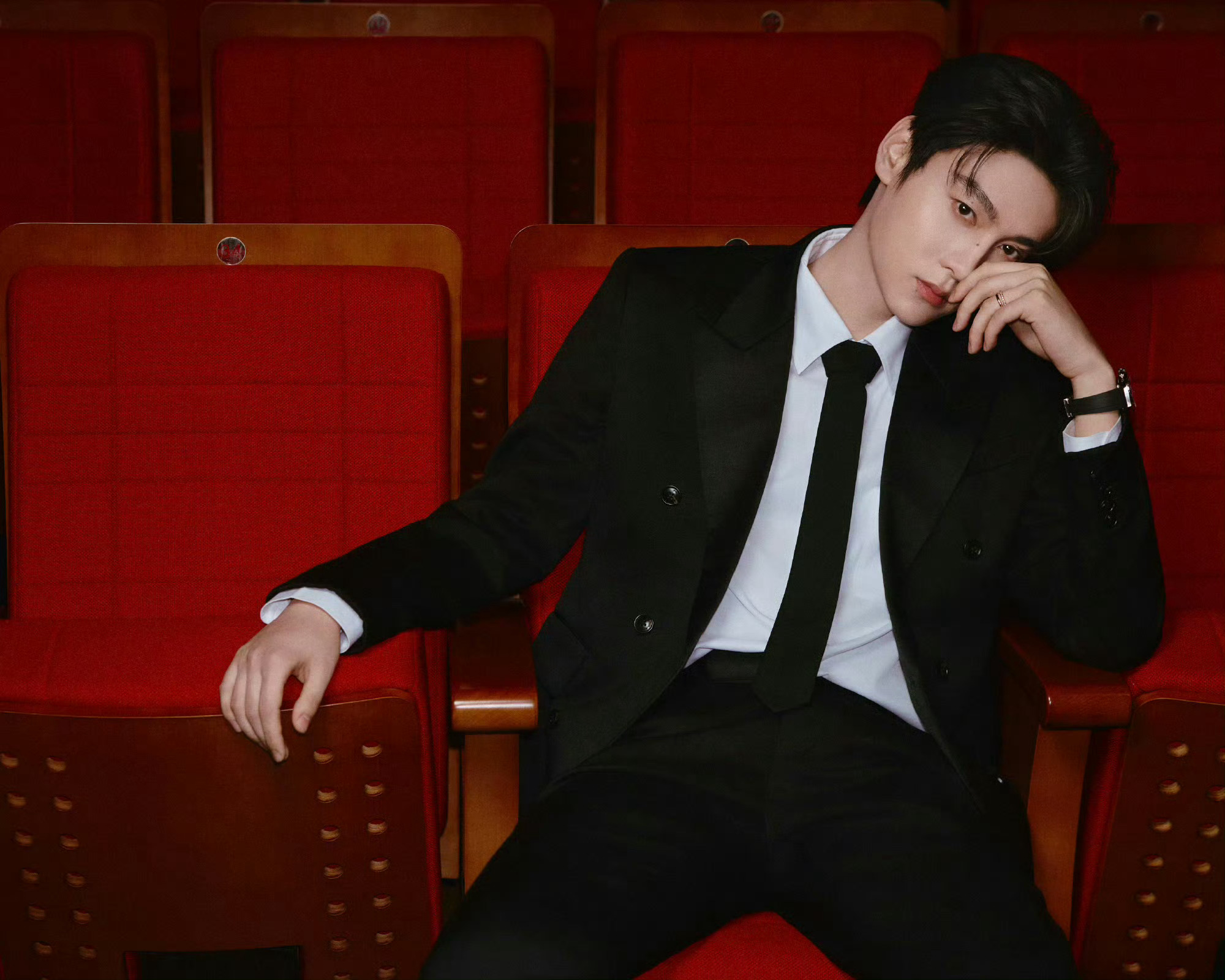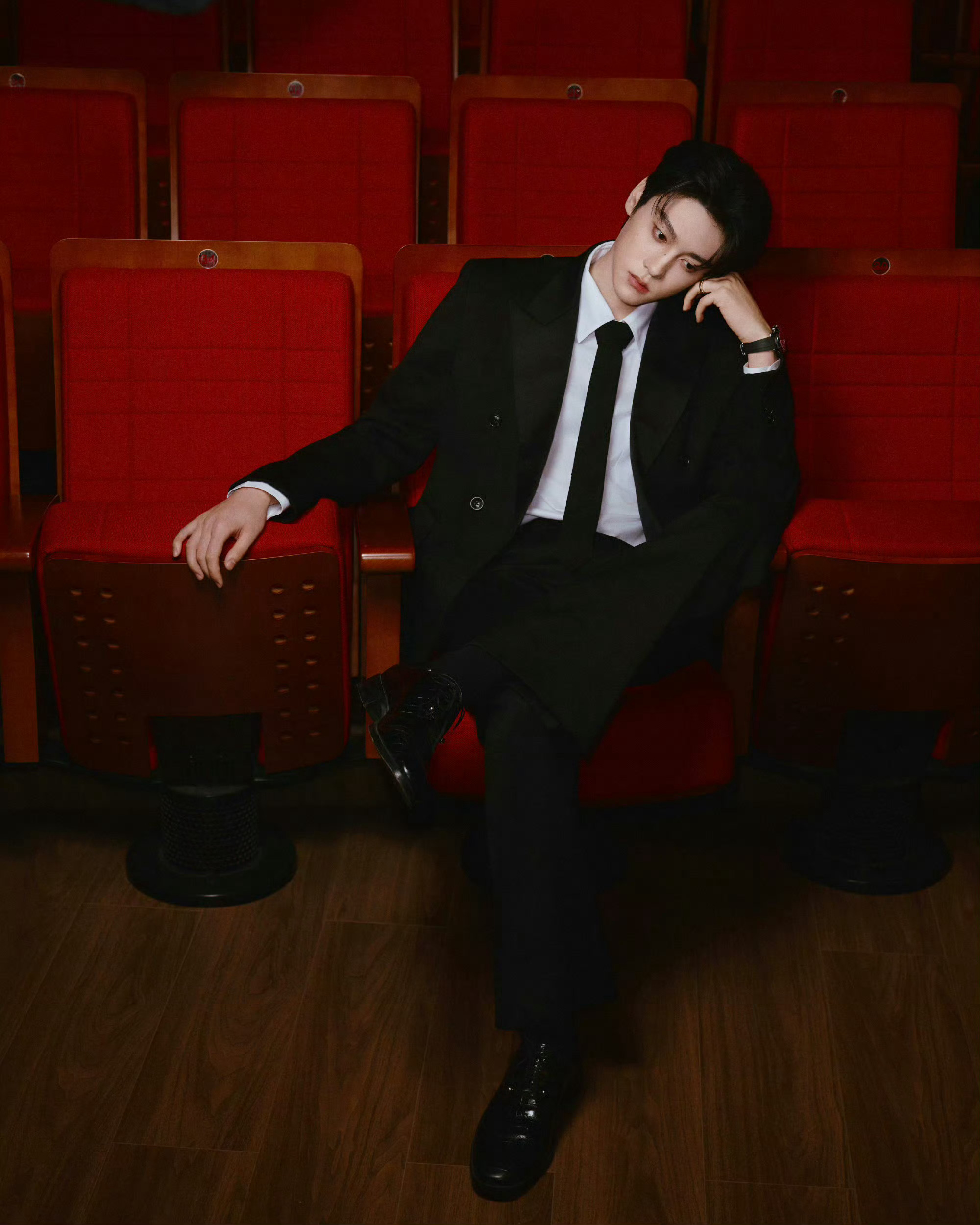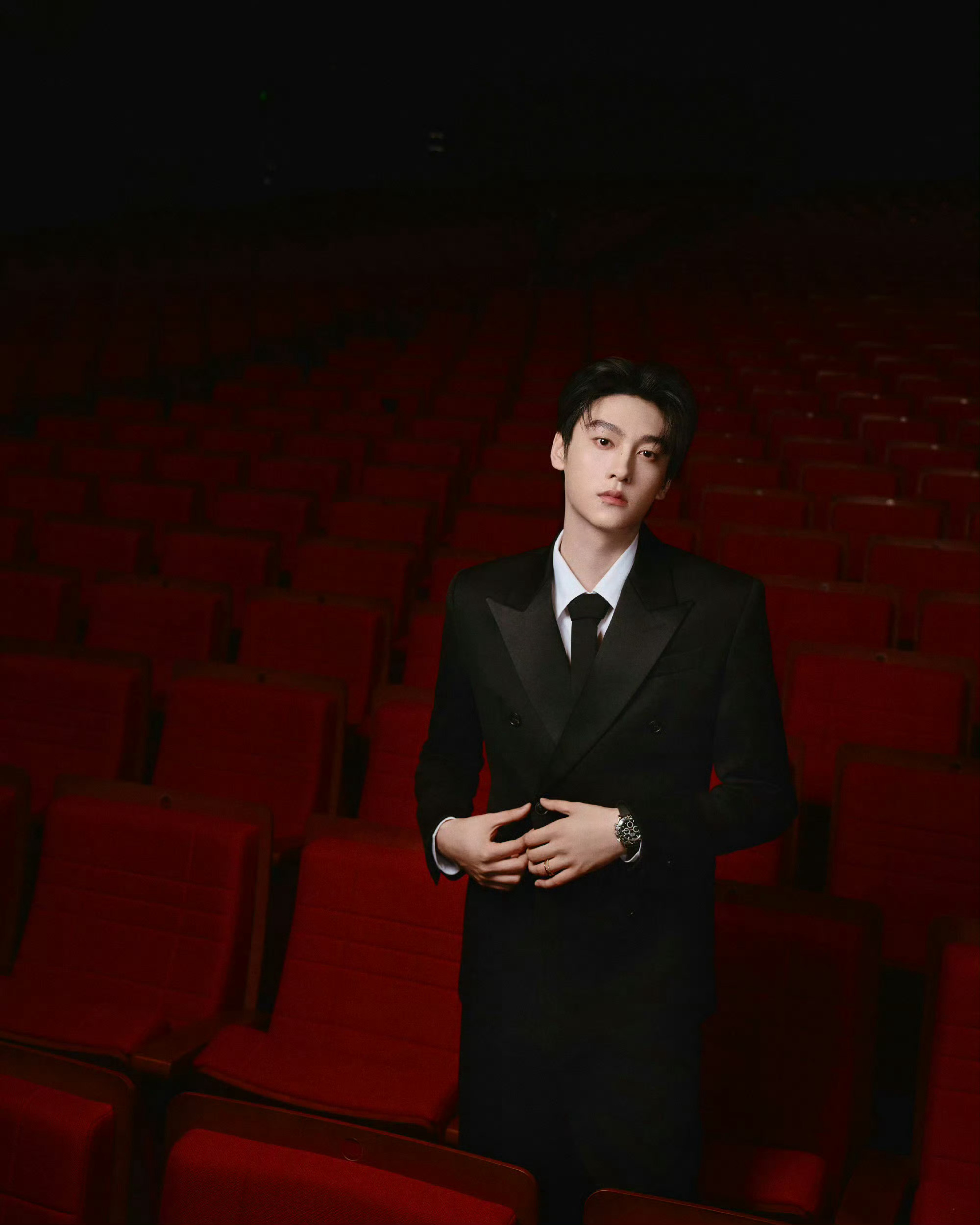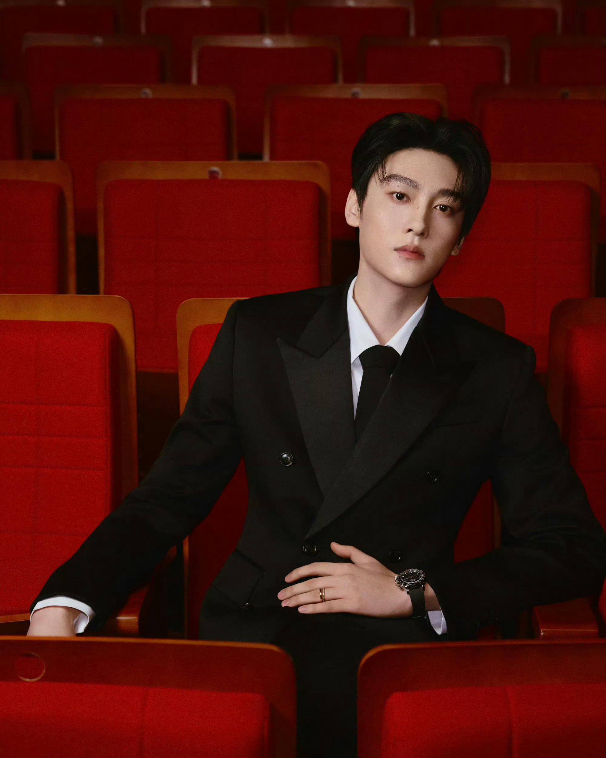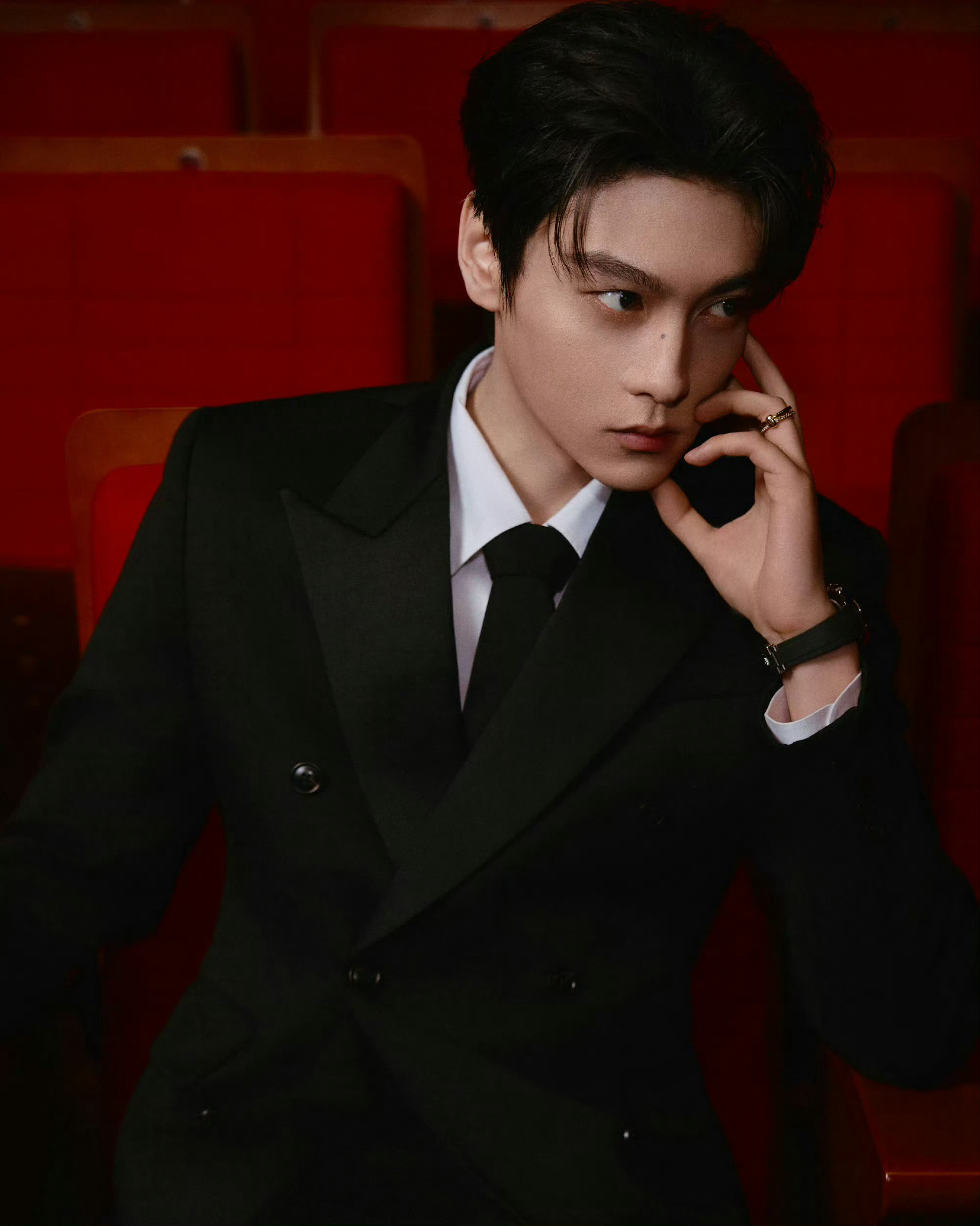 田栩宁|“何日君再来”纪念邓丽君交响音乐汇造型出图,身穿Amiri黑色剪裁西装,佩戴Pomellato高级珠宝,矜贵优雅,沉稳绅士。