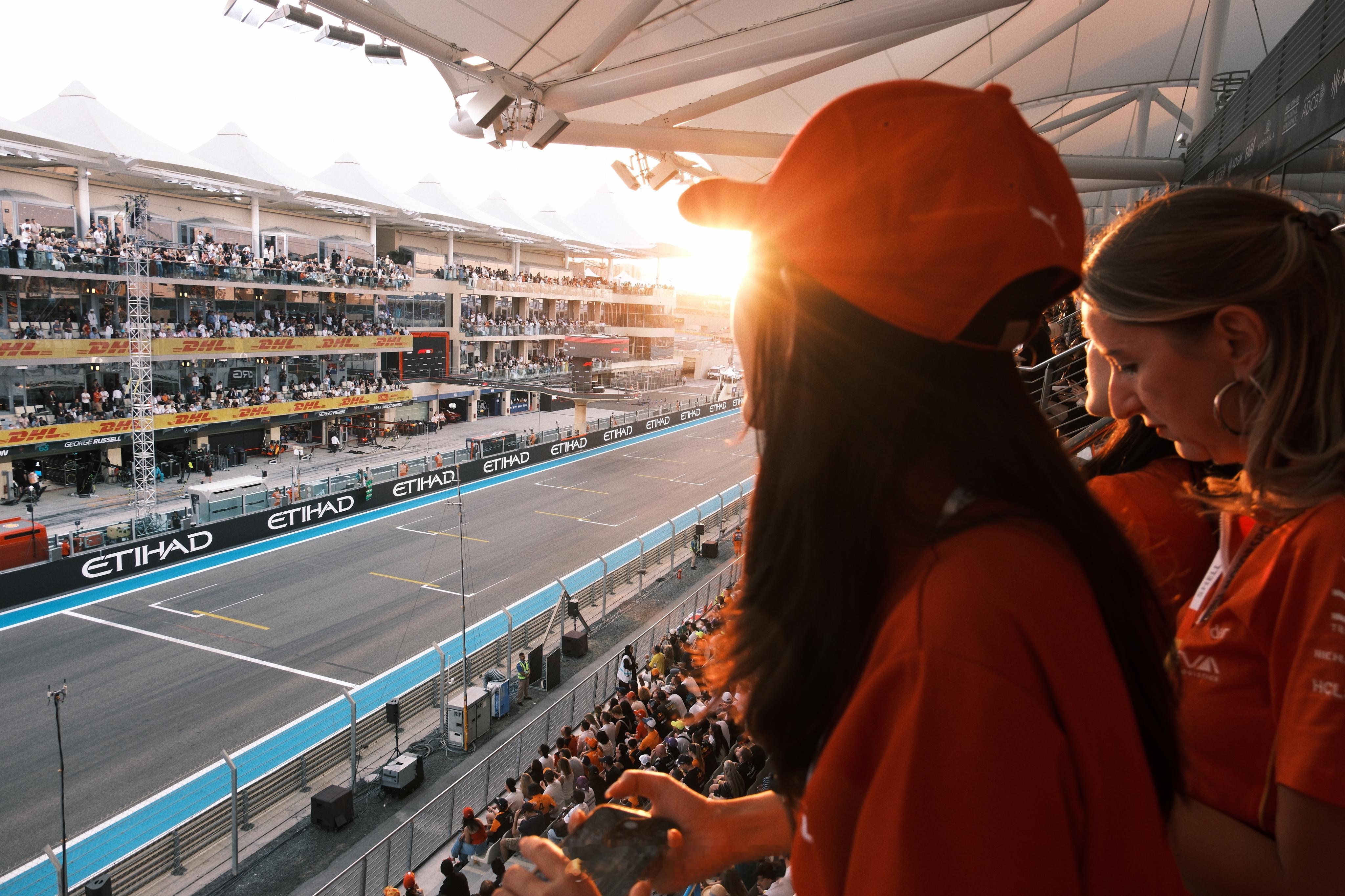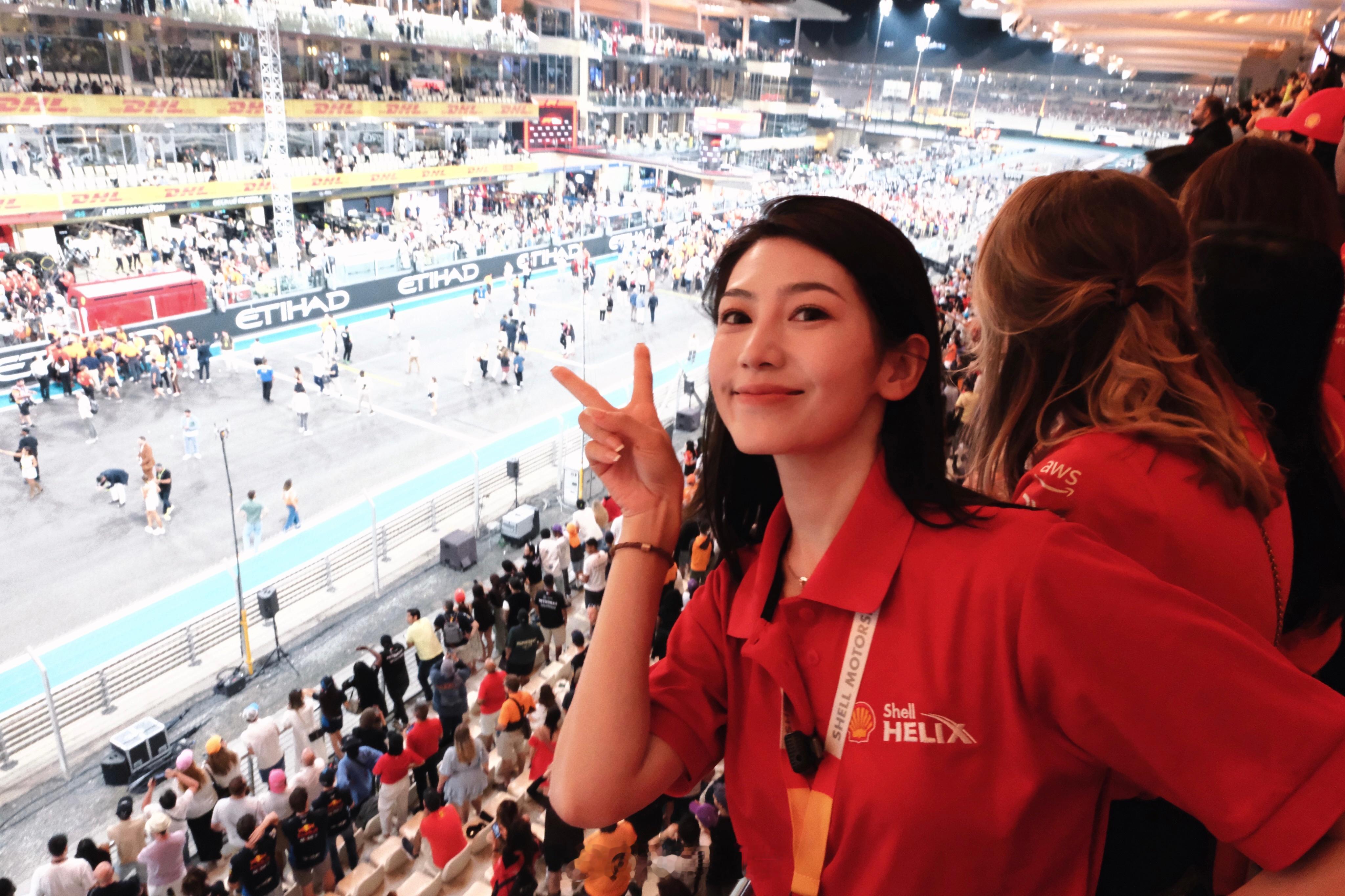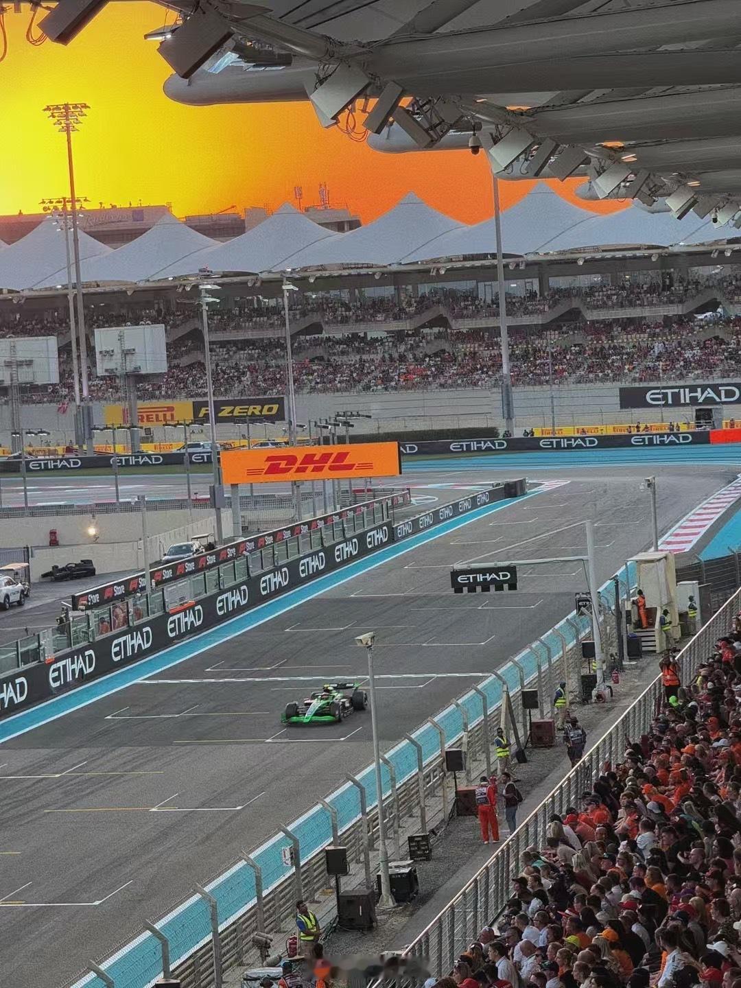 刘亦菲阿布扎比观赛F1看到神仙姐姐又去阿布扎比了去年此刻也在亚斯码头赛道 看过绝美落日和赛道烟火还有老汉画的的甜甜圈