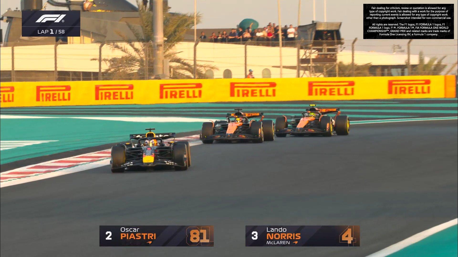 皮亚斯特里外线强吃诺里斯阿 上到第二F1赛车2025F1阿布扎比大奖赛