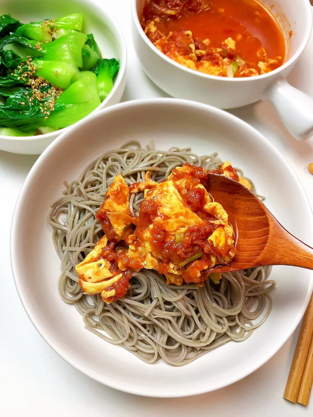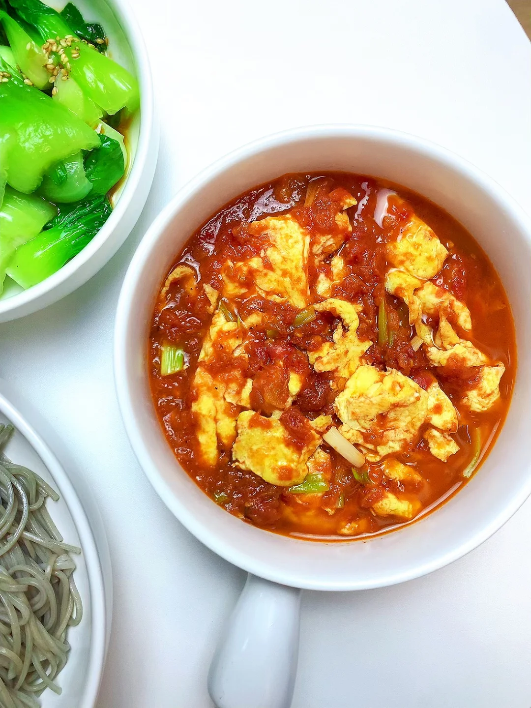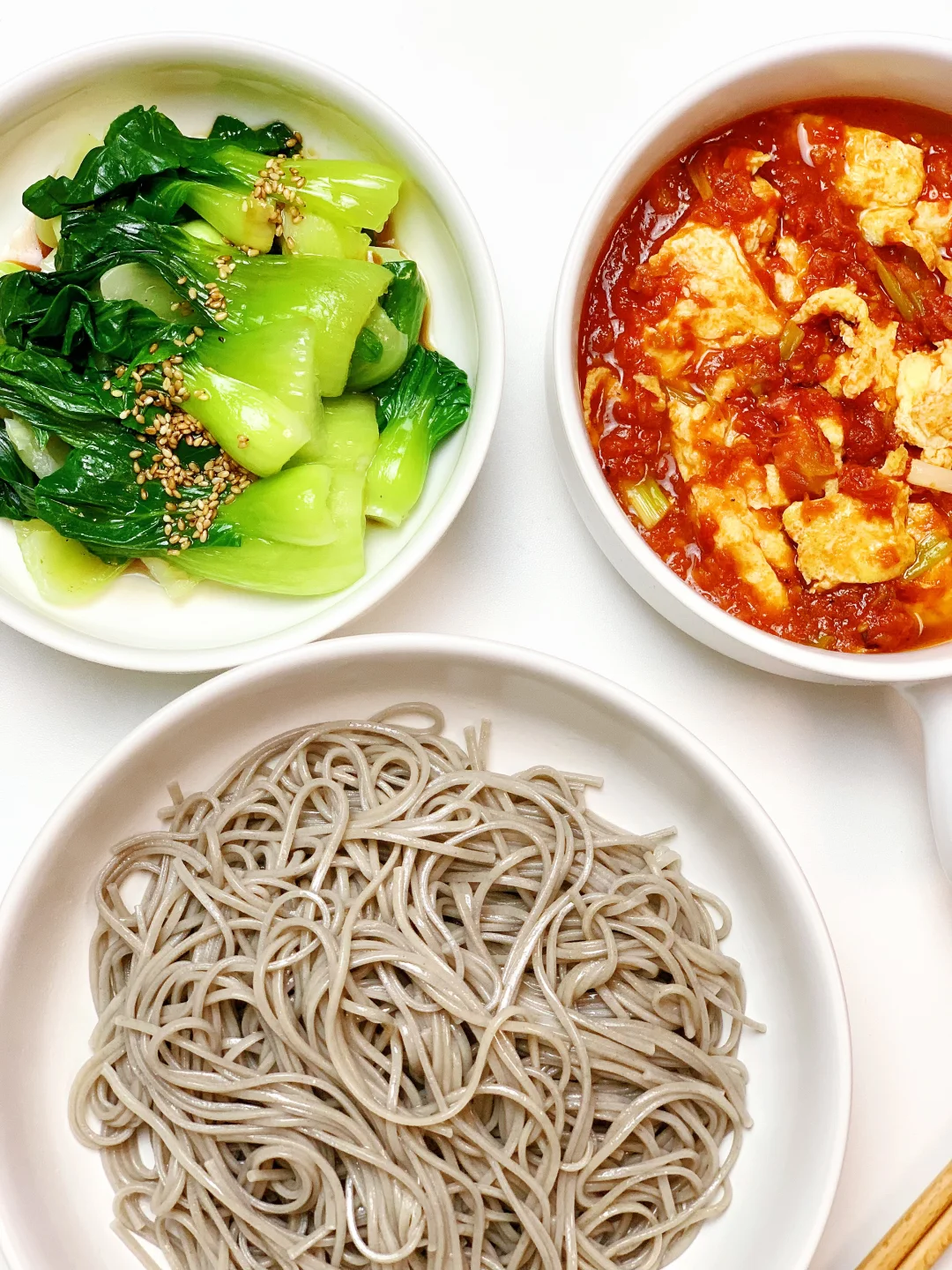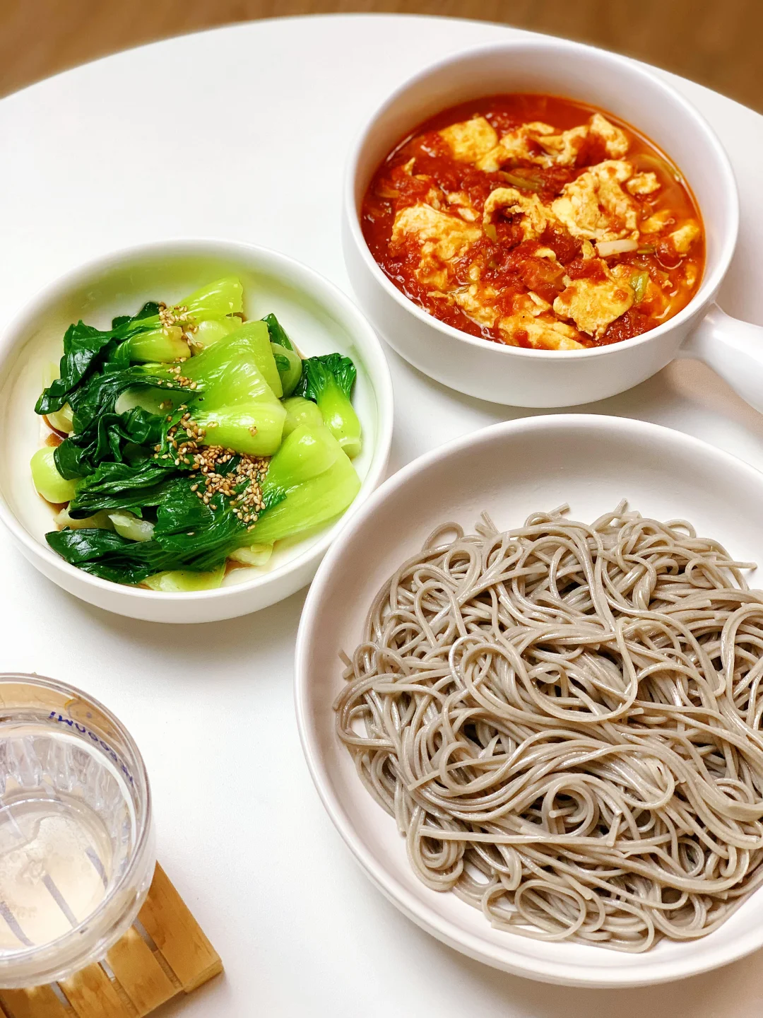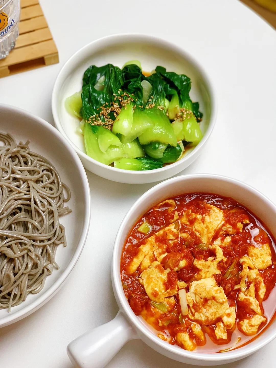 👩🏻🍳分享晚餐菜单 1️⃣西红柿炒鸡蛋 2️⃣白灼上海青 主食:荞麦面条🍜 ……………………………………………………………………………… 🛒食材清单:鸡蛋 | 上海青 | 荞麦挂面 📝早八打工人的一日三餐,拒绝外卖[哇R],坚持做饭的一天,今天是怎么都吃不腻的番茄🍅鸡蛋拌面,荞麦面无敌了[开箱R] 🍭下次分享妈妈做的💯无添加剂的西红柿酱🍅,期待₍˄·͈༝·͈˄*₎◞ ̑̑