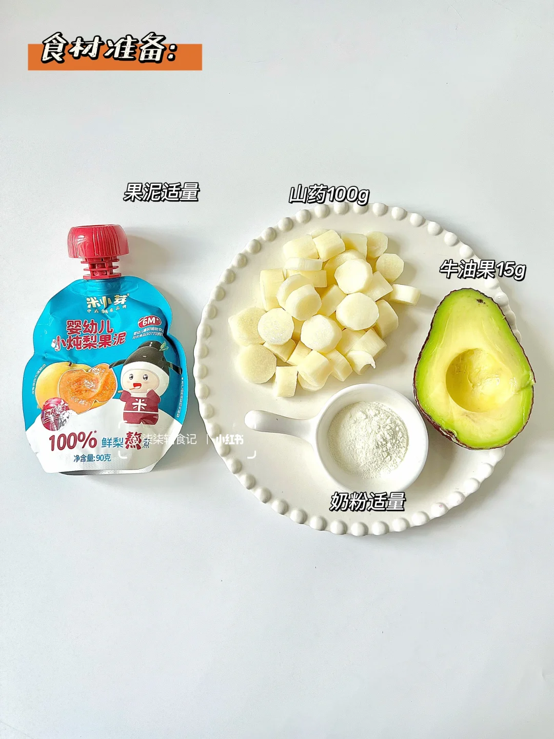 山药100g,牛油果15g,奶粉适量,果泥适量