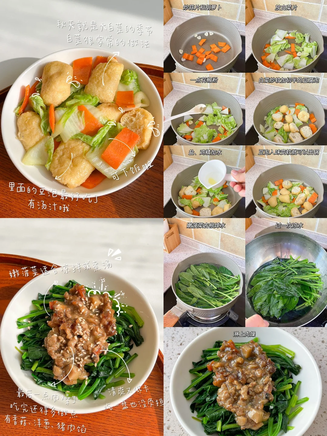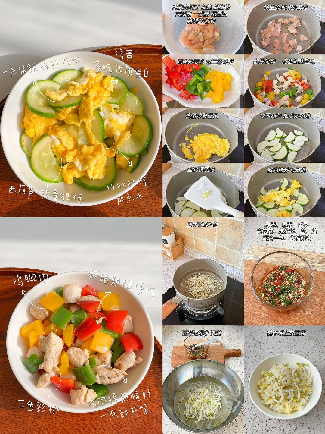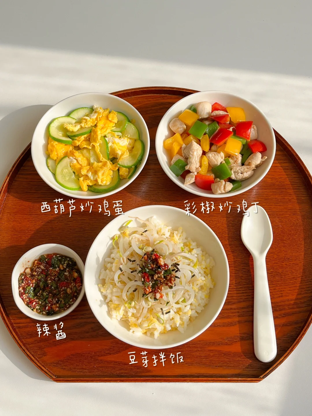 “一个人吃饭,可以吃的少,但也要吃得好!” 整理了一下最近吃的午餐 好吃营养又健康哦~ 做法都在图上 🟢彩椒炒香菇+肉末蒸蛋+菠菜饭 🔴菠菜炒鸡蛋+肉末豆腐+玉米饭 🟠西葫芦炒蛋+彩椒鸡丁+豆芽饭 🟡白菜炒豆泡+肉酱菠菜+玉米饭