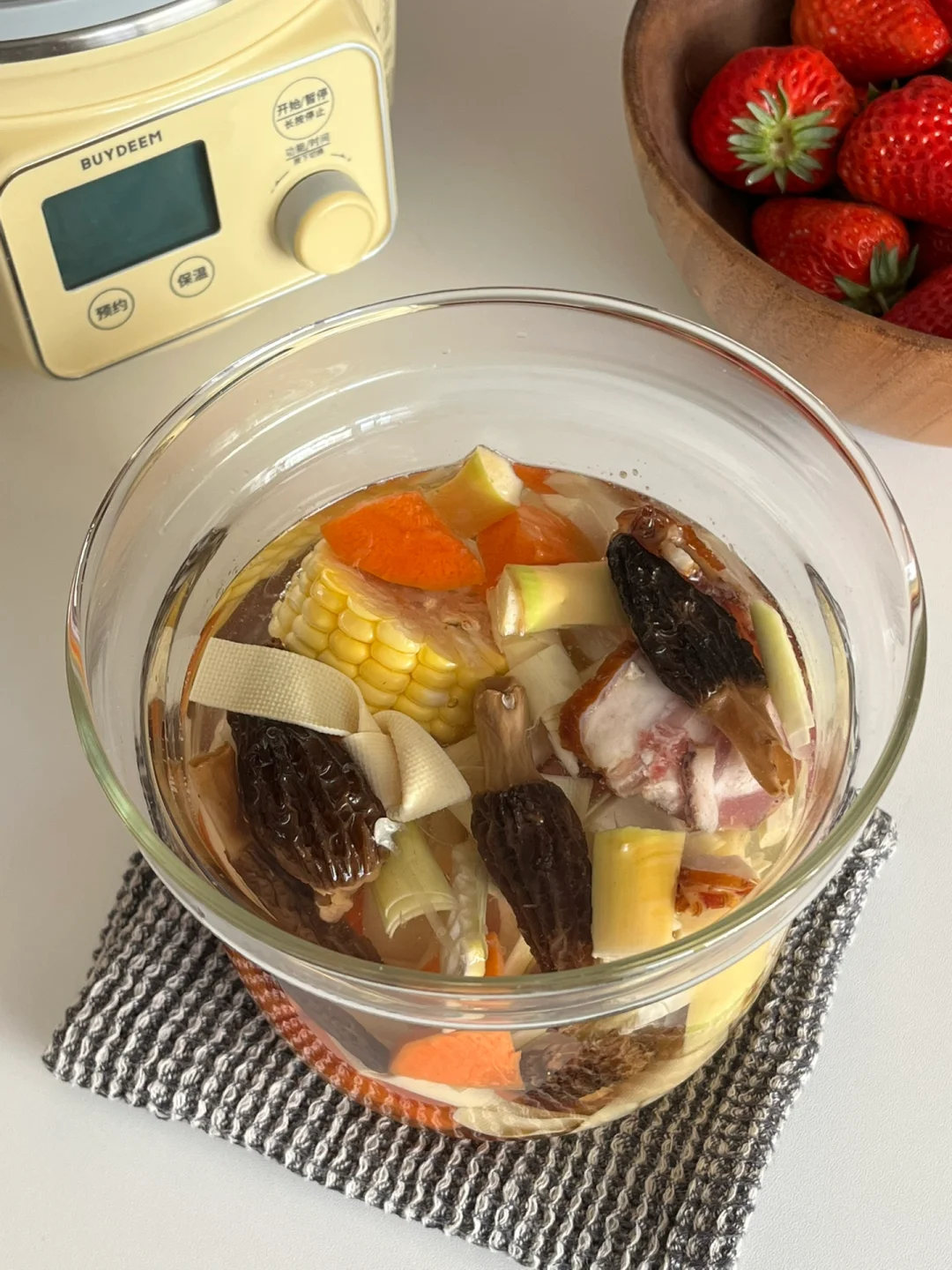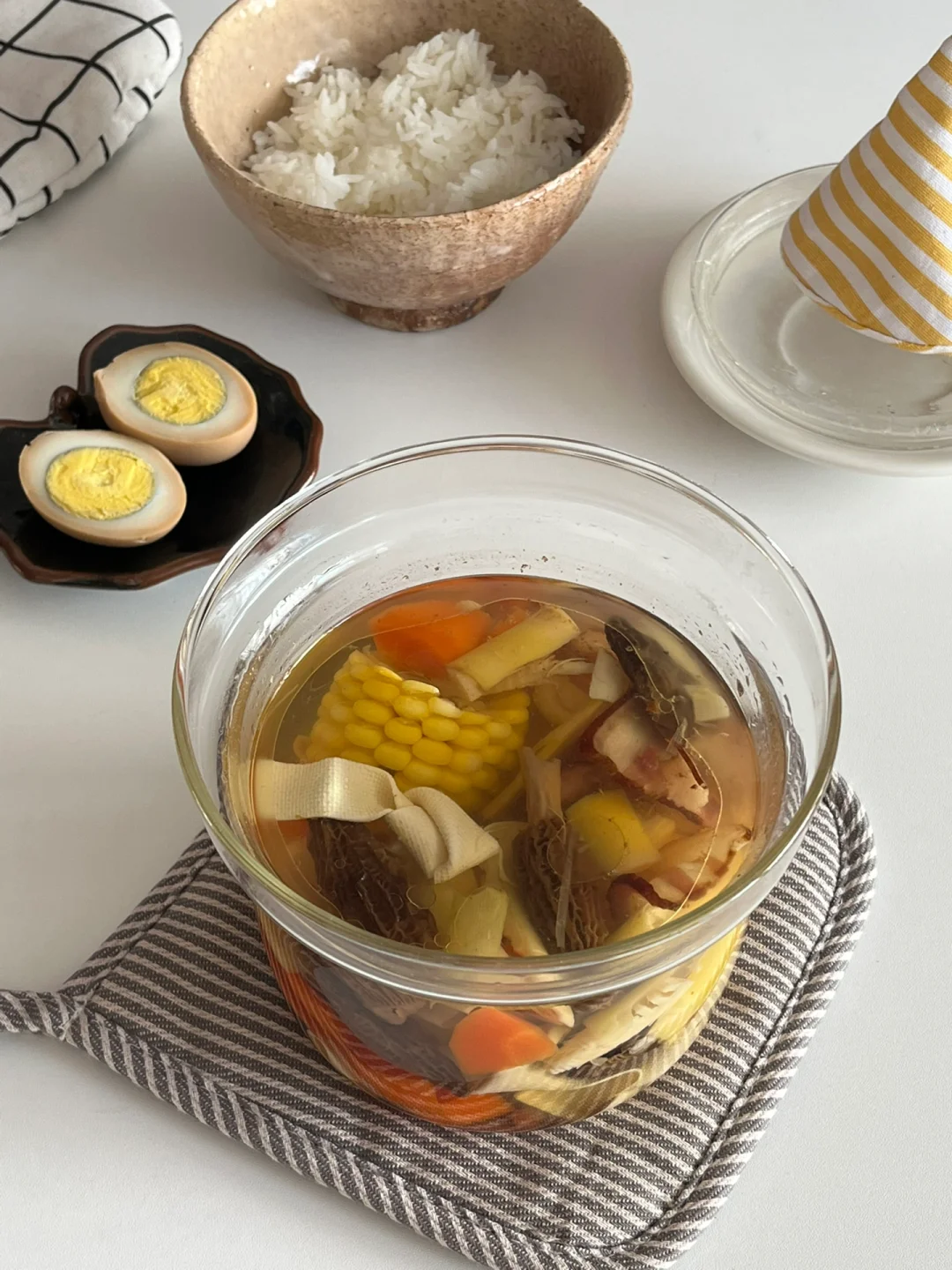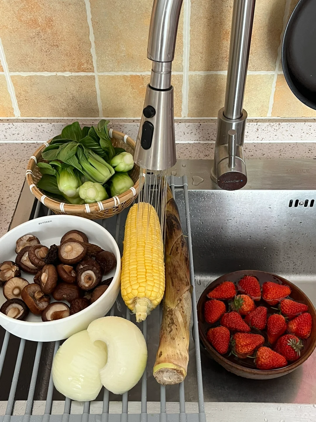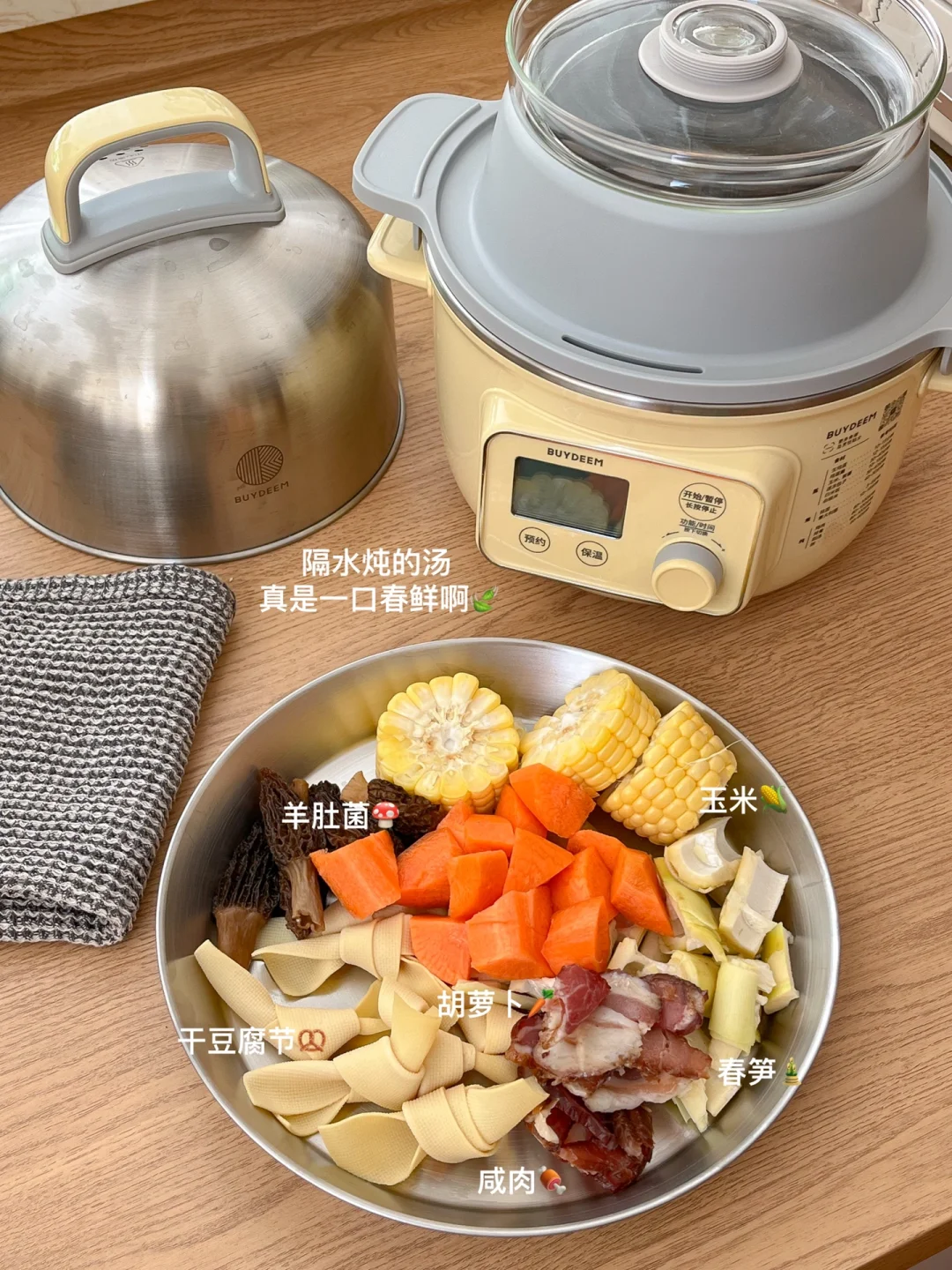 今天的饭: 台式卤肉饭🍖 覆盆子挞🍒 蒜炒上海青 腌笃鲜🎍 冰橙汁🧃草莓🍓 腌笃鲜🎍 趁着春天笋最嫩的时候来一碗腌笃鲜吧 简单的隔水炖味道也不错 鲜掉眉毛啦 喝一口汤 一口笋 一口玉米… 配上自己做的卤肉饭 就一个字 香! 台式卤肉饭🍖 卤肉炖得软软糯糯 肥而不腻 入口即化~ 一般用带皮的五花肉 我把家里库存肉都清空了 用炒出的猪油炸洋葱和香菇丁 再放黄酒/米酒 出香味再放酱油和黄冰糖 小火咕嘟1个小时 记得多留点汤汁 浓郁的酱汁裹着每一粒米饭 一口下去 什么疲惫都不见了[派对R][派对R]
