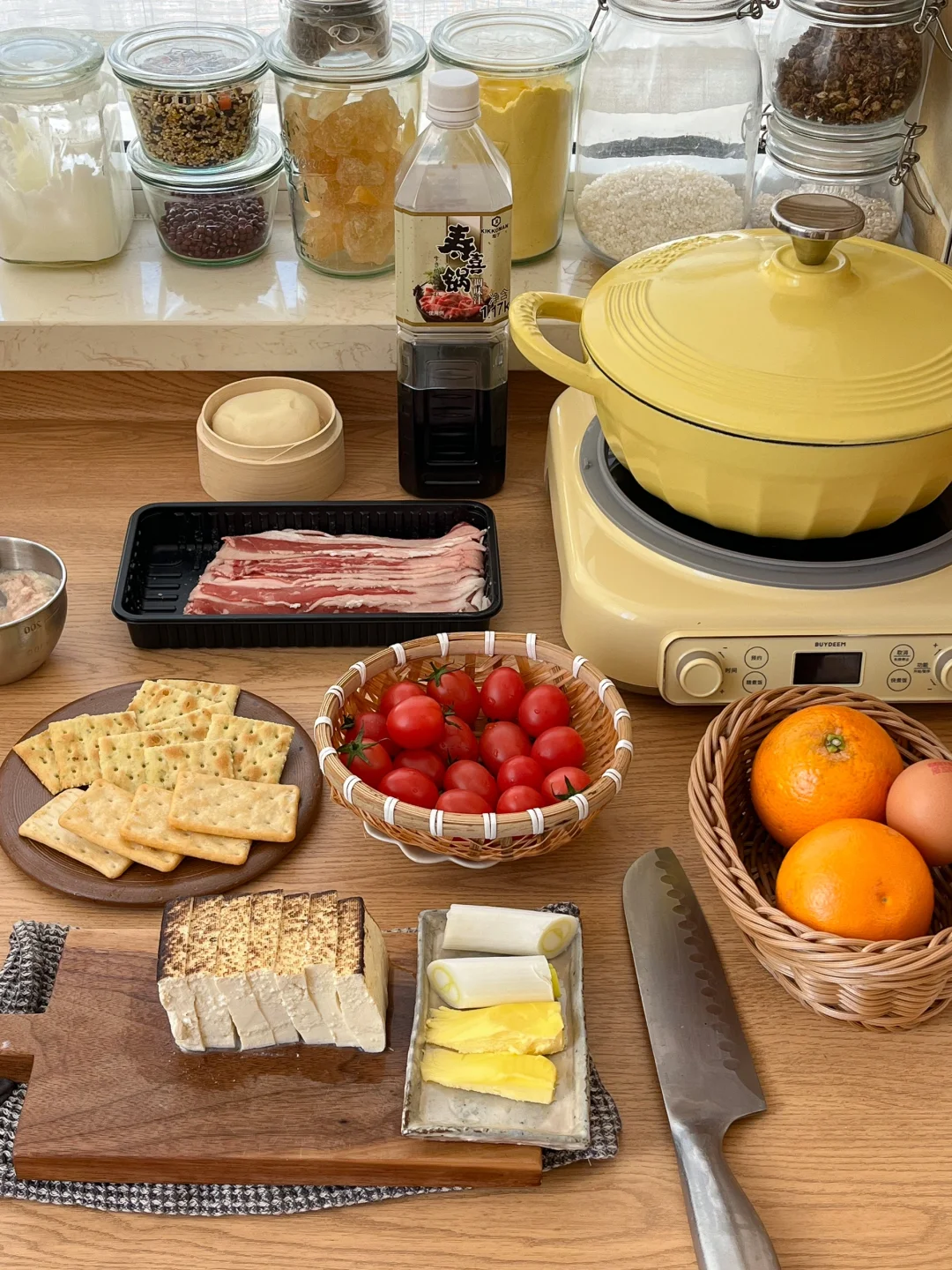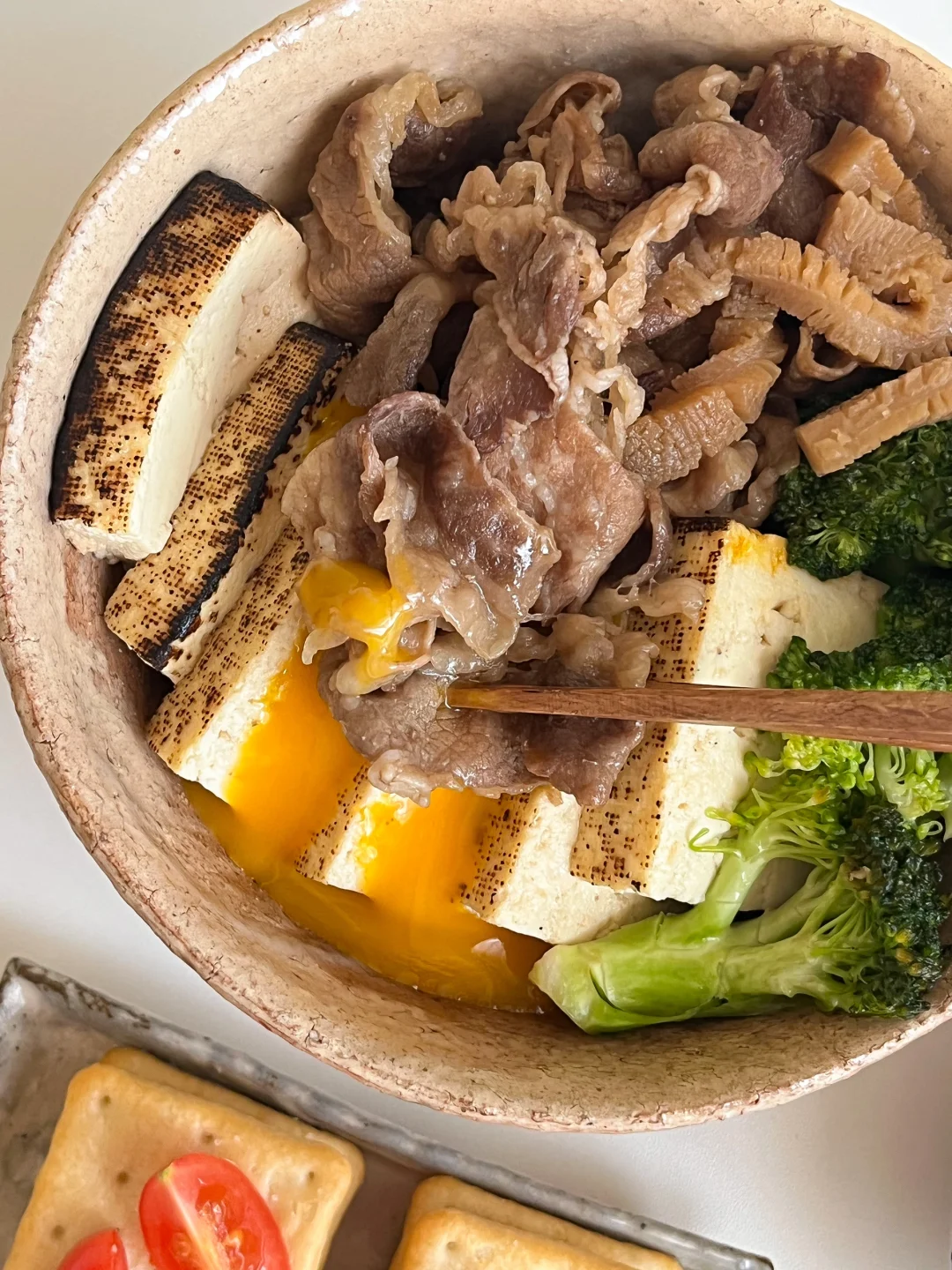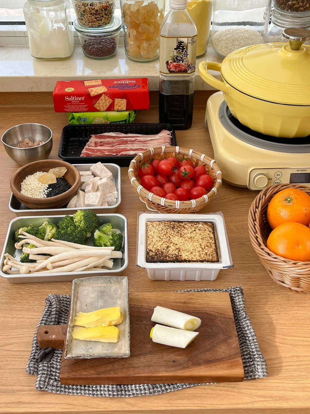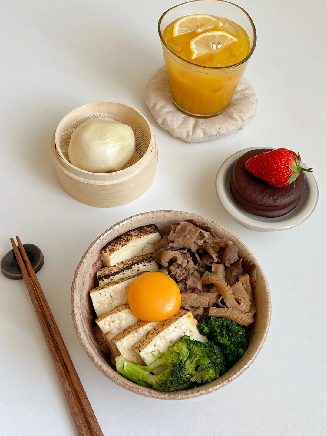 肥牛片、可生食鸡蛋、魔芋、大葱、烧豆腐