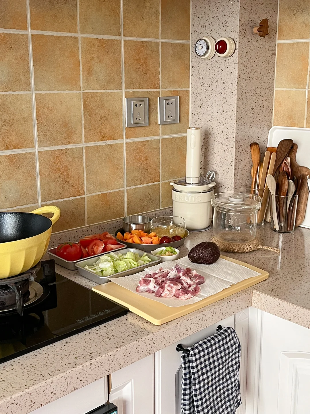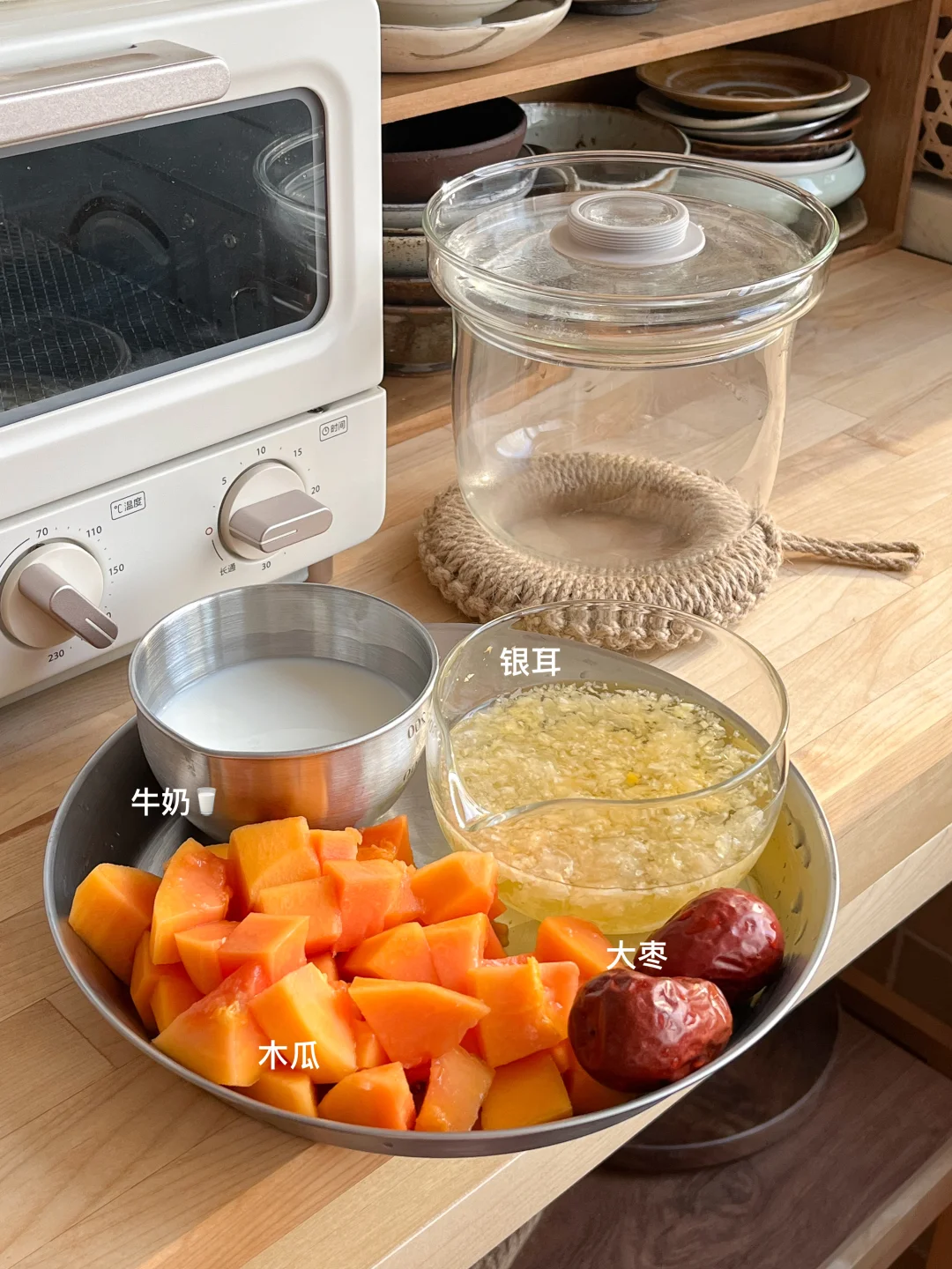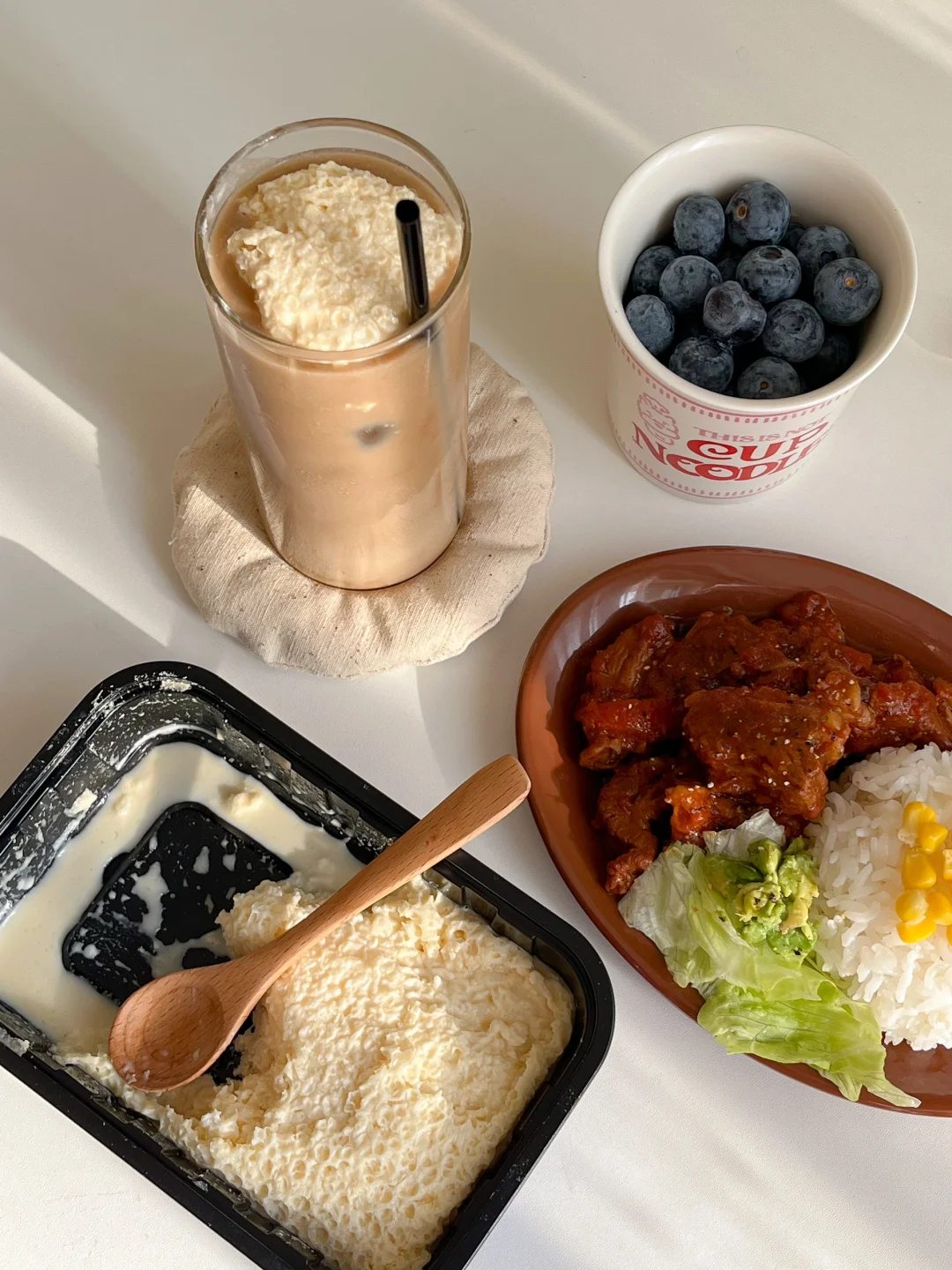 今天的饭: 番茄排骨饭🍅 牛油果生菜沙拉🥑 炖牛乳木瓜银耳🍯 奶皮子香蕉拿铁🍌 蓝莓🫐 番茄排骨🍅 这次用的两小条猪软肋骨 只有脆骨很好煮烂 三颗番茄 一颗切块 两颗打碎煮汤用 不想打碎就去皮切小块 把番茄融入到肉汤 汤汁才会酸甜浓郁 多留点汤拌饭哟 奶皮子香蕉拿铁🍌 香蕉牛奶+浓缩+奶皮子=快乐 奶皮子口空吃了半盒 然后就..腻住了 炖牛乳木瓜银耳🍯 冬天女孩子就得喝点润润的小炖品 用电炖盅还是挺方便的 也不怕煮干锅啦 把木瓜、银耳、大枣 一起放进去 少加一点水 吃的时候再放牛奶或椰奶🥛