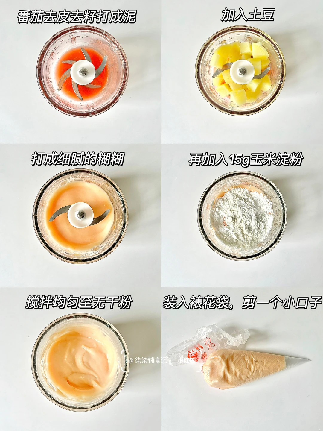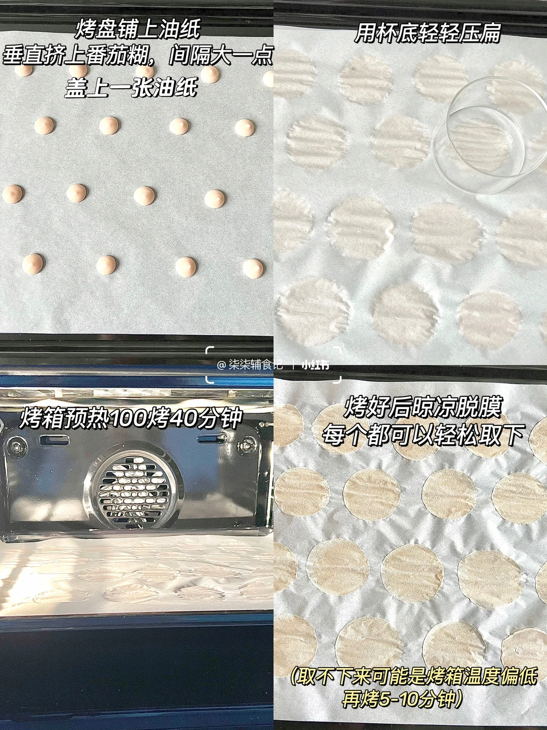 ▫️烤盘铺上油纸,挤入番茄糊,间隔大一点