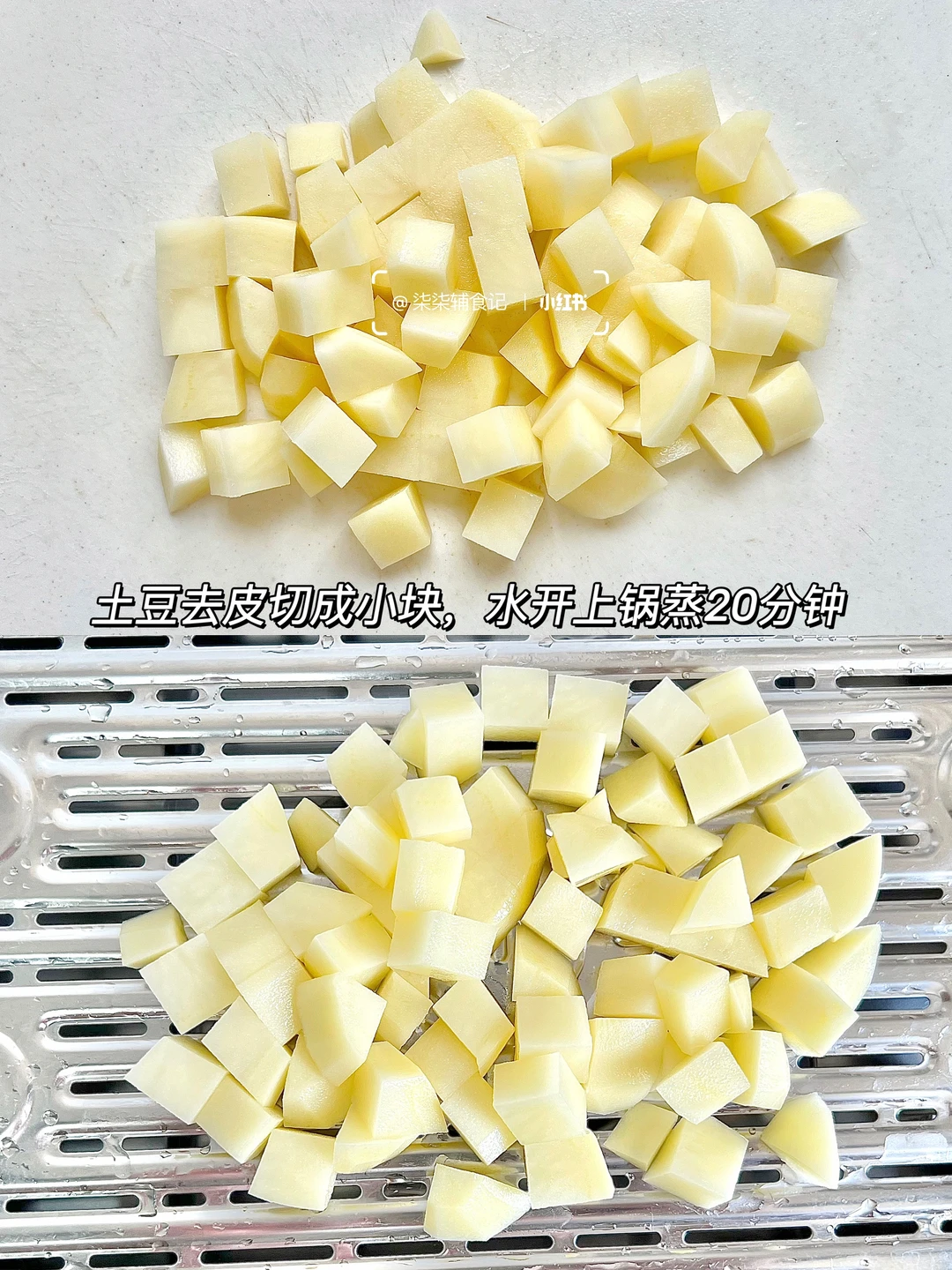 ▫️土豆去皮切成小块,水开上锅蒸20分钟