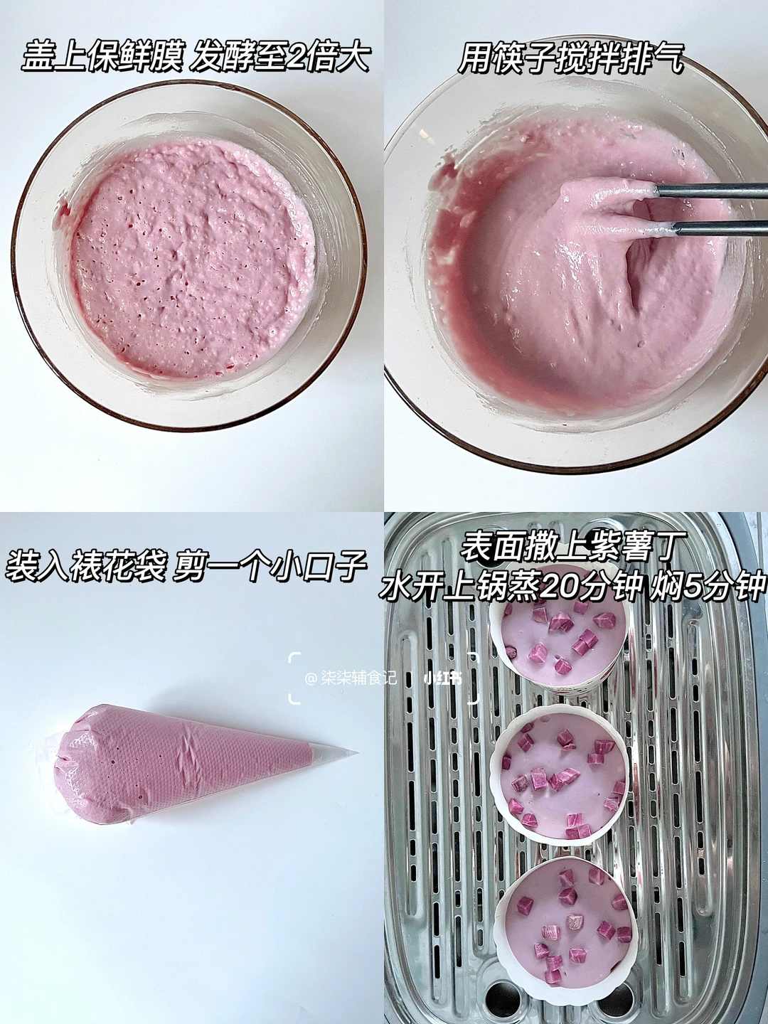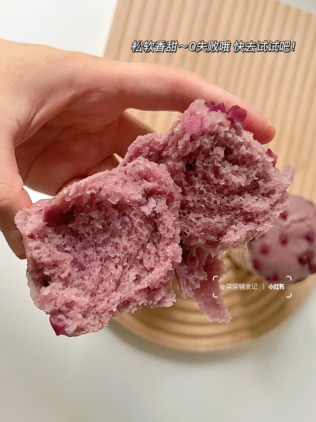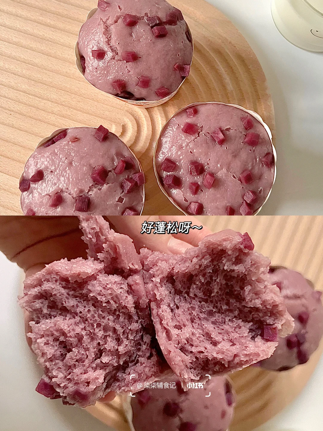 之前分享的发糕做法,大家都反馈好成功呀~今天又来分享做法chao简单,免揉面的紫薯来啦!大人小孩都能吃😋