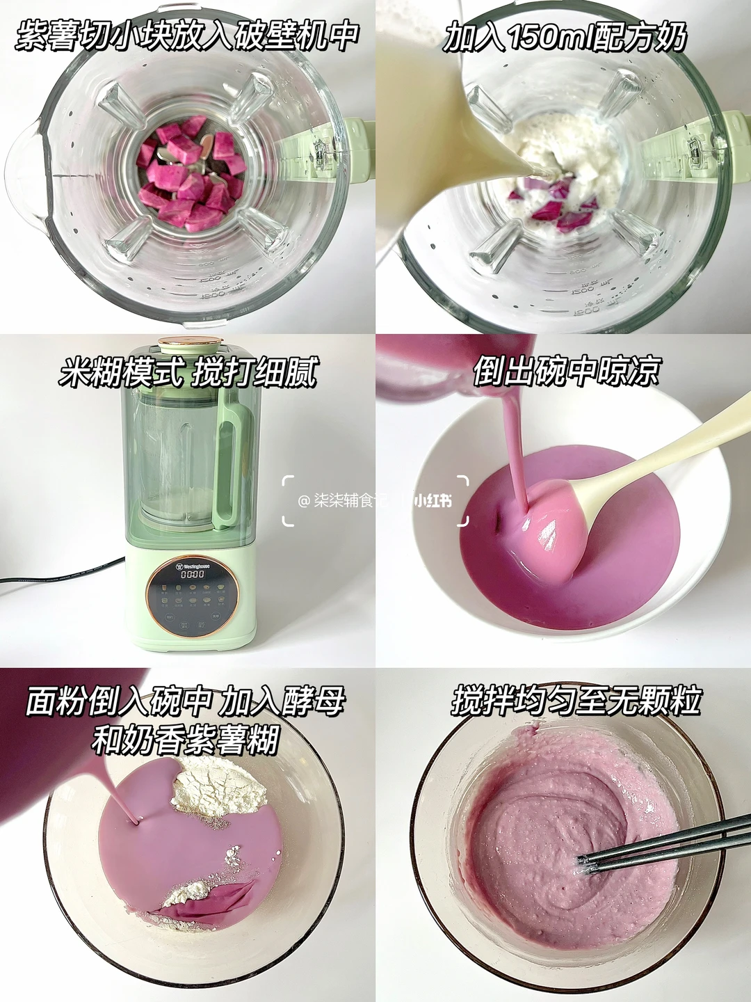 ▫️紫薯切小块放入破壁机➕150ml配方奶,搅打成细腻的糊