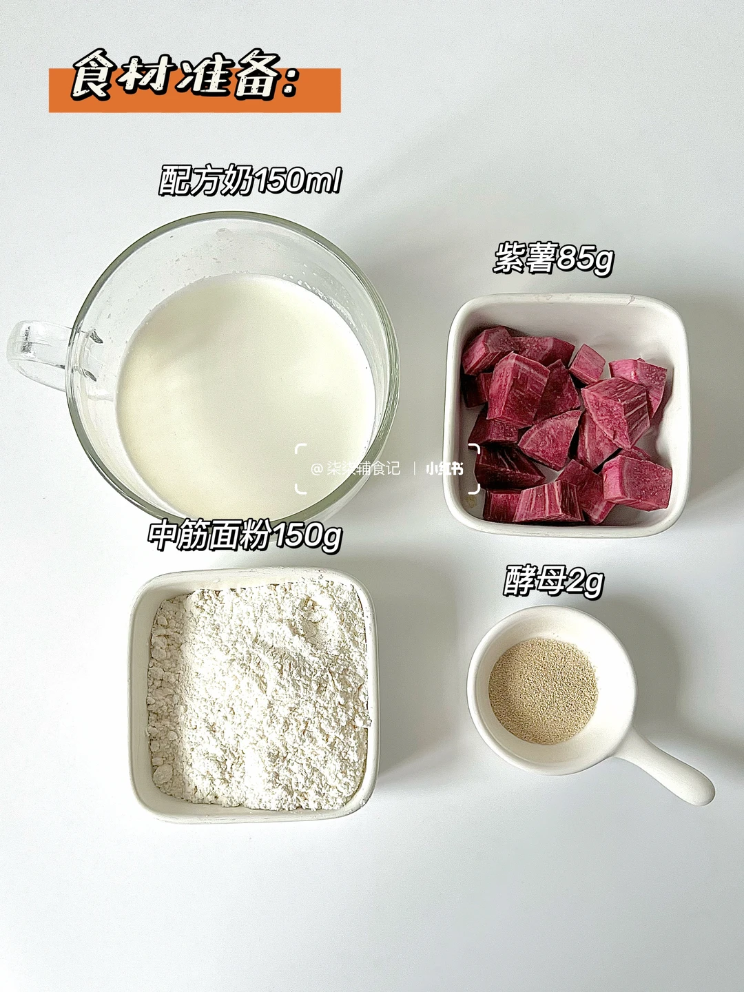 紫薯85g、配方奶150ml、中筋面粉150g、酵母2g