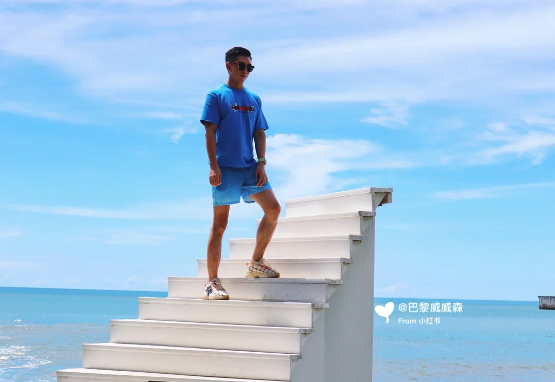 那关于景观拍照能这里有一个越南的网红的那个楼梯他的是一个海边天梯可以适合打卡,