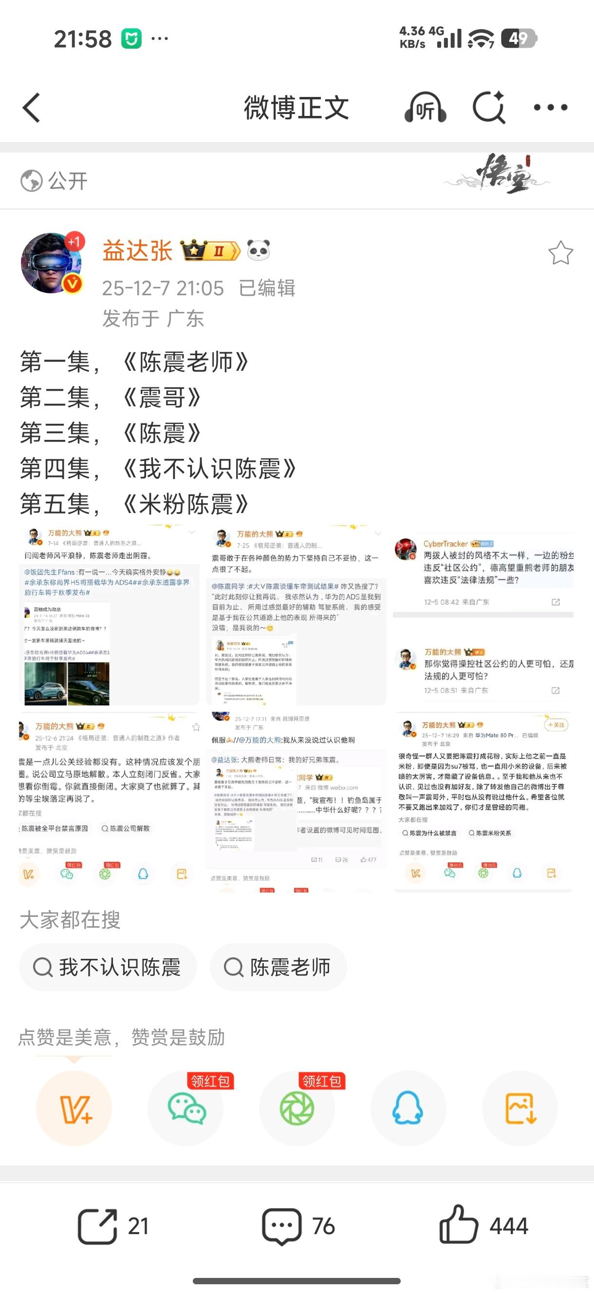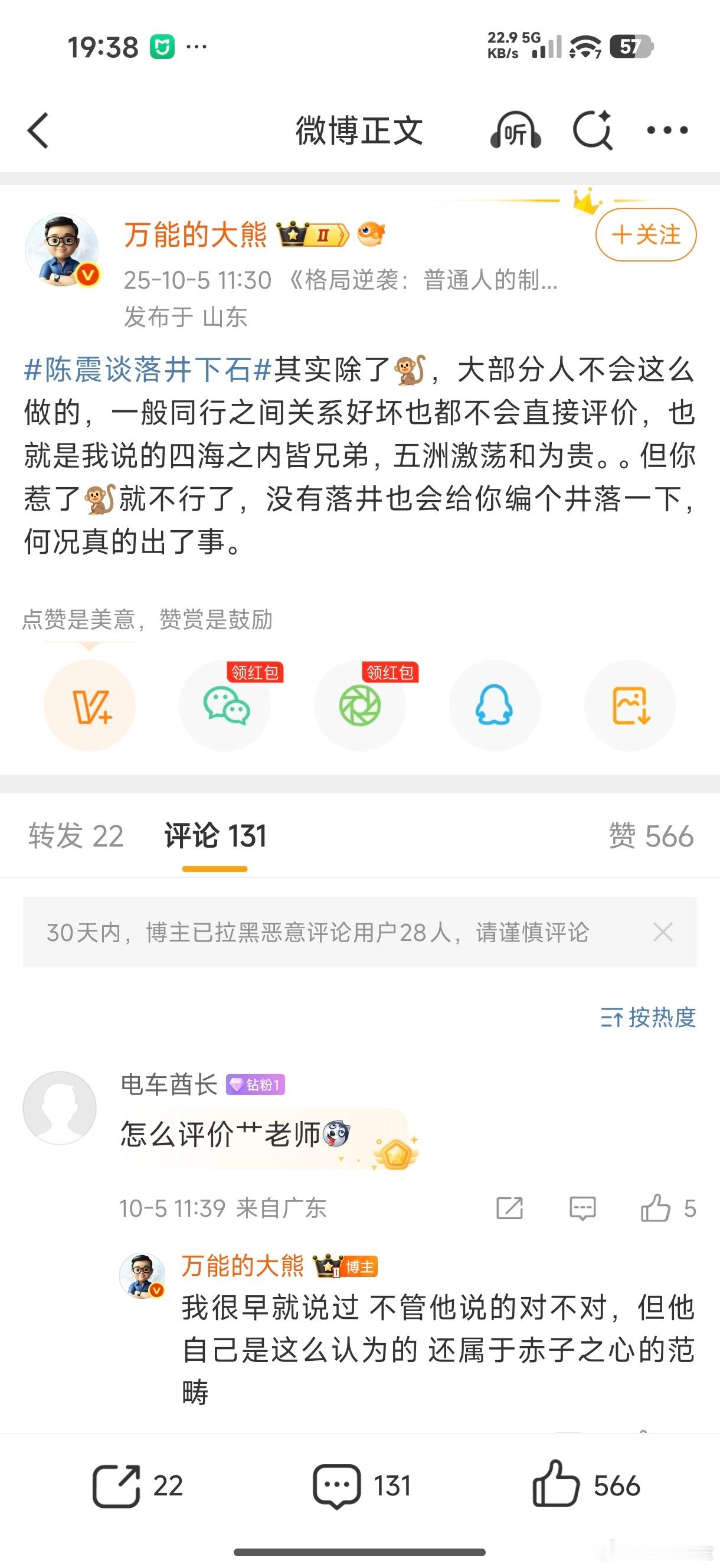 哈哈哈哈,大熊连续剧之陈震,从陈震老师→震哥→陈震→我不认识→米粉…绷不住了,这中间的心路历程,怕是只有大熊自己清楚了,其中🐒落井下石是陈震之前的转折点,然后就变成米粉了…