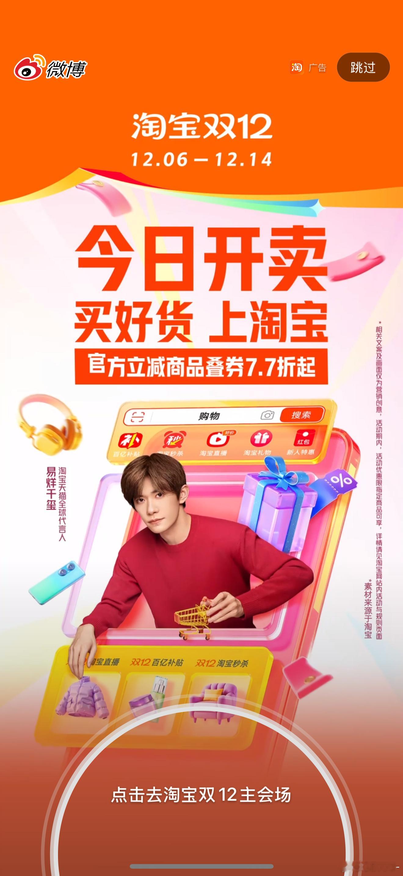 欢迎淘宝天猫全球代言人易烊千玺!购物、外卖、旅行,你的万千生活所需,万能的淘宝都