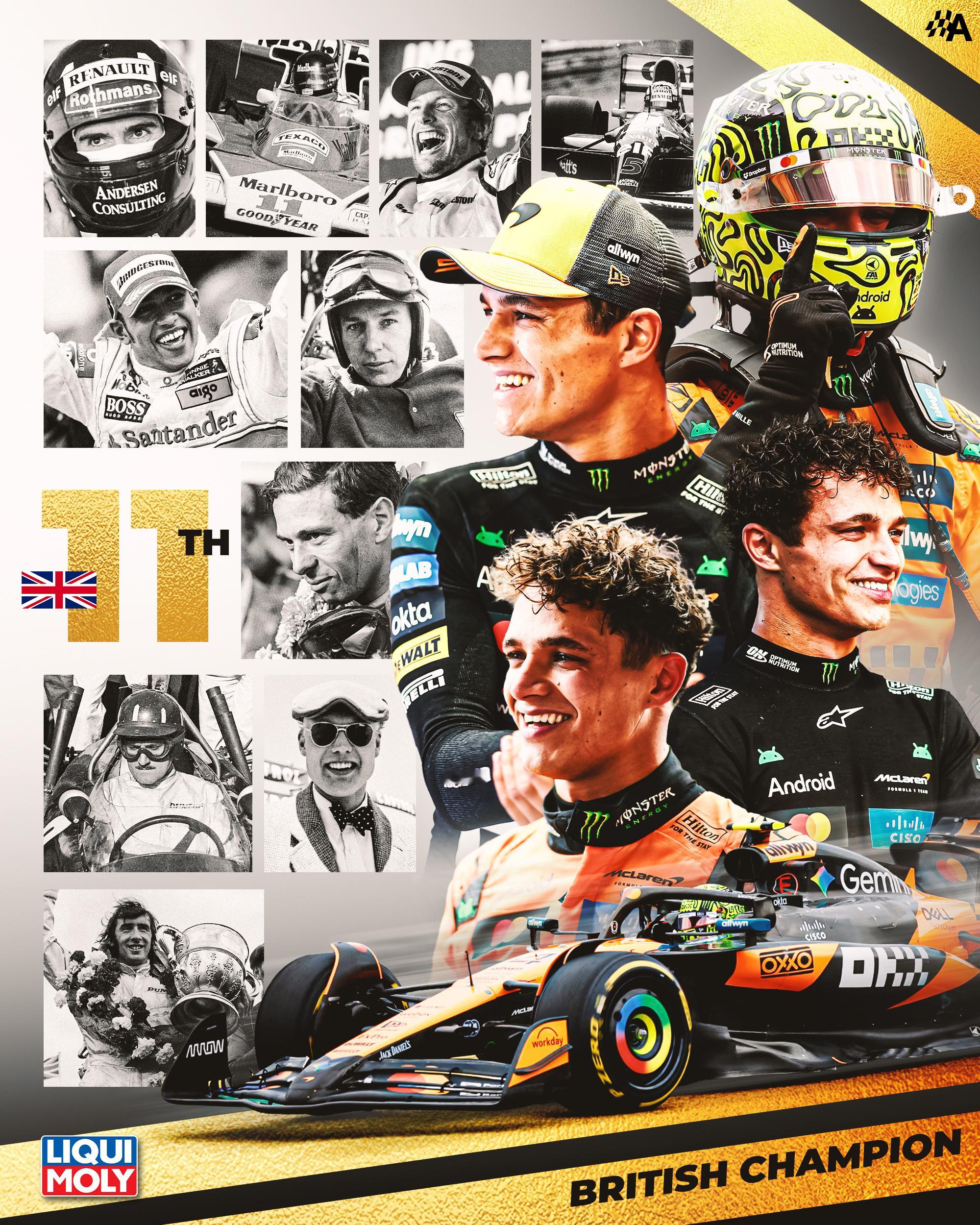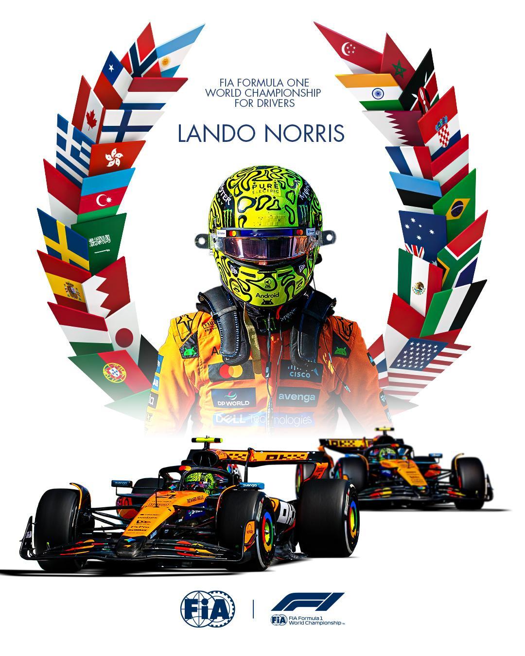 恭喜! 迈凯伦车队车手兰多•诺里斯 在本赛季最后一场F1比赛夺得2025赛季F1