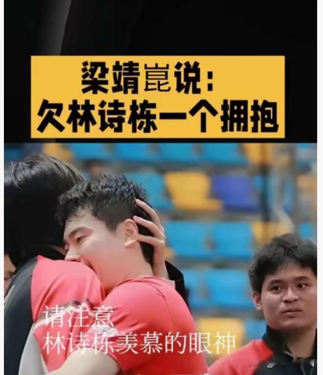 赛后好感动的画面啊!昨晚上林诗栋赢了张本智和后,下来先去找梁靖崑要抱抱,小石头好