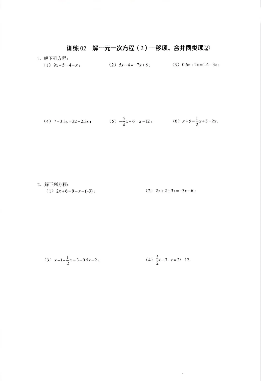 暑期提前学 七年级上册 初一数学 七年级 一元一次方程 中考数学几何模型 小升初 中考 解一元一次方程