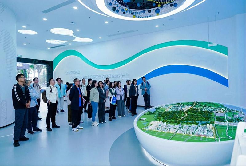 在当天的考察中,博士团先后走访了药谷规划展览馆、华研胶原科技公司等重点点位。在药谷规划展览馆,数字屏幕和沙盘生动呈现了“一区七园、产业集群”的布局,工作人员围绕园区多样产业、研发平台、资金扶持、人才服务、生活配套等问题进行讲解;在华研胶原科技公司,研发团队与博士们就胶原蛋白技术的创新应用、产业链延伸等内容展开专业对话,现场交流氛围热烈。