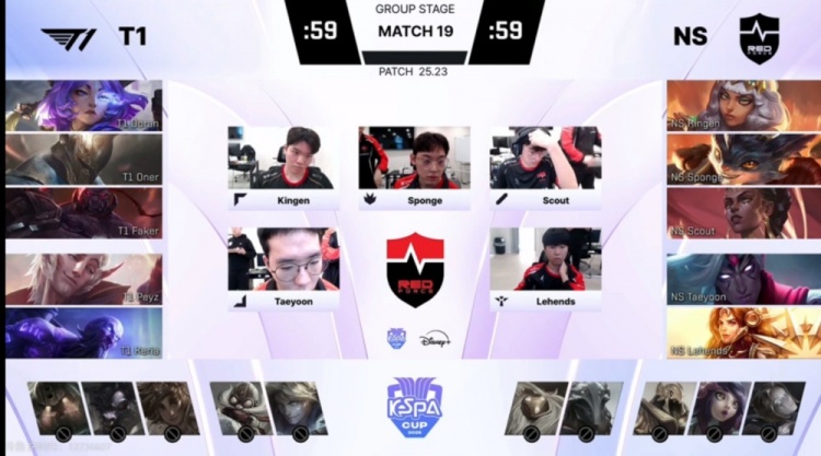 NS:上单Kingen、打野Sponge、中单Scout、下路Taeyoon、辅助Lehends