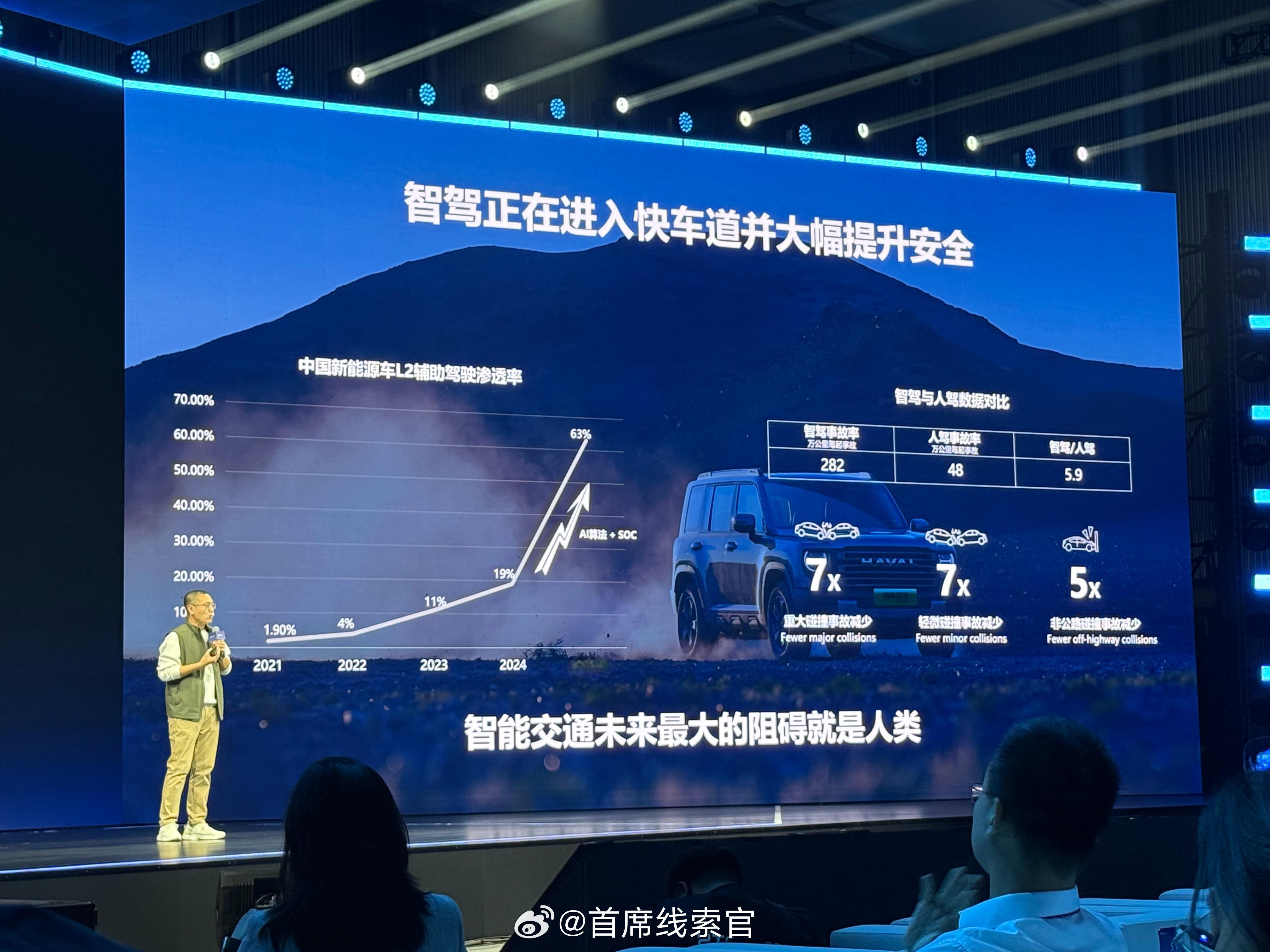 智驾正在进入快车道,并且在大幅度提升安全。一个值得关注的数据:—— 智驾与人驾的事故率对比是 5.9。长城汽车技术中心副总经理姜海鹏表示:—— 智能交通未来最大的阻碍,就是人类。新能源汽车 308_IO新能源汽车